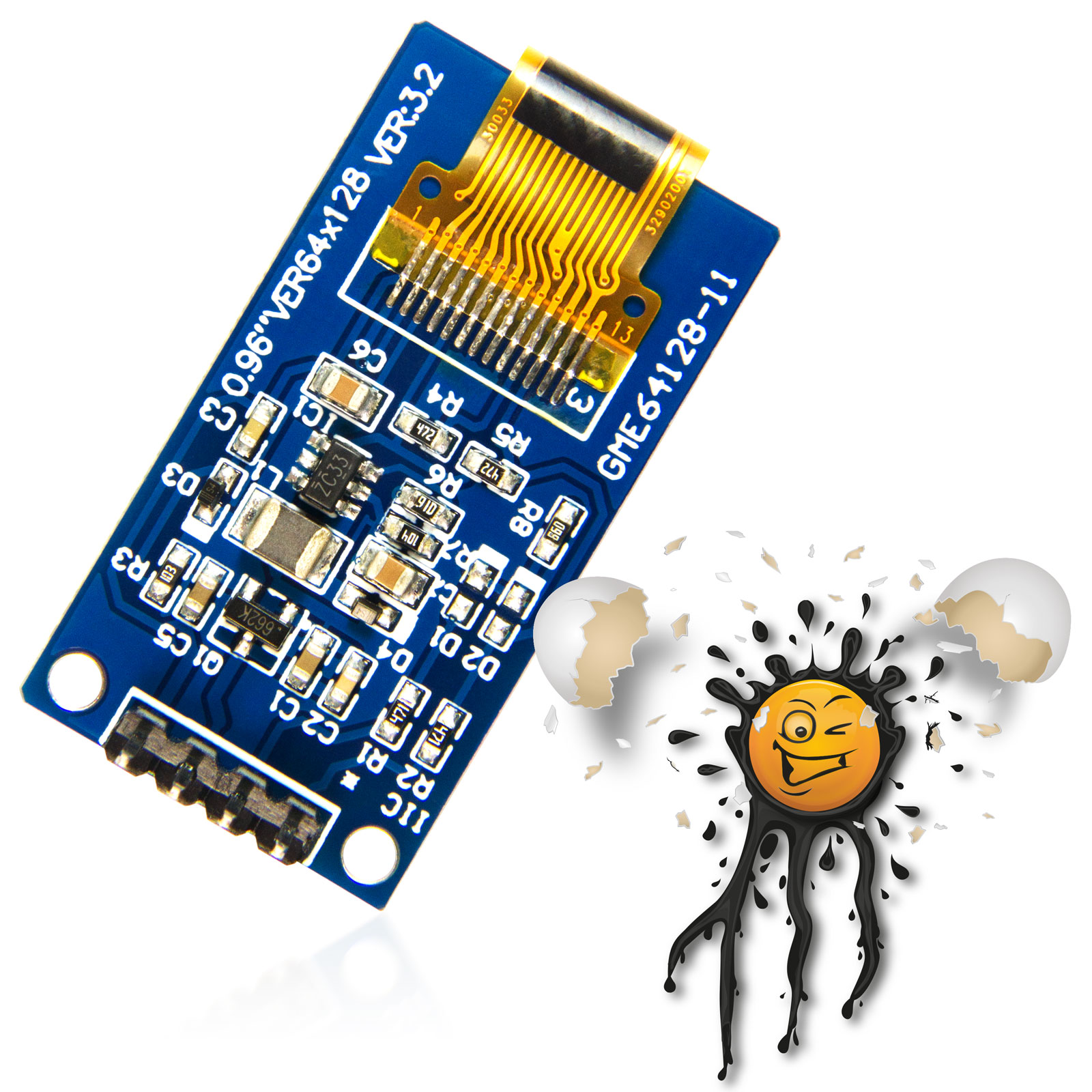 The 0.96 OLED display supports a vertical resolution of 64 x 128.