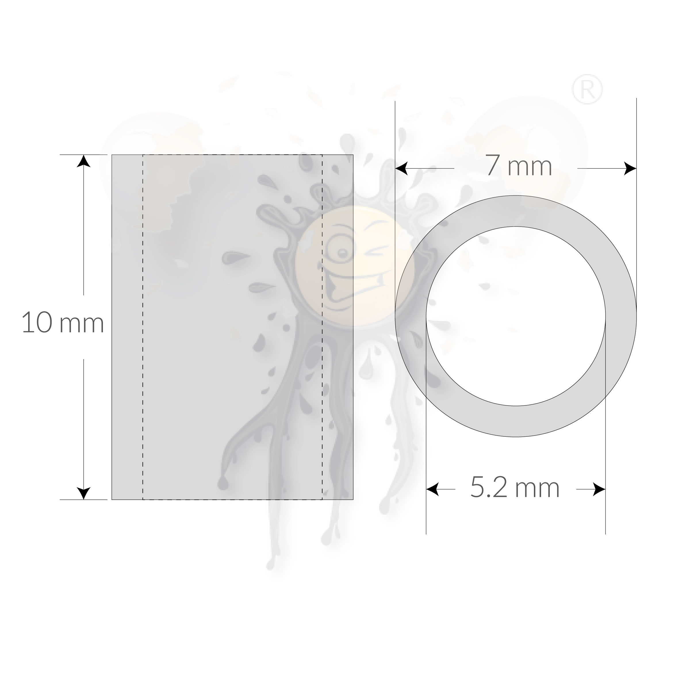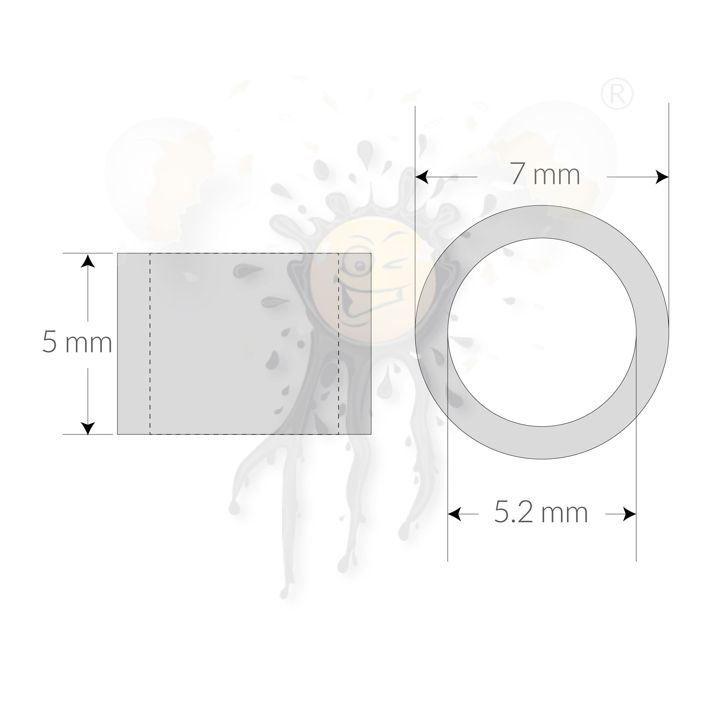 Der Innendurchmesser der Abstandhalter beträgt 5,2mm und ist passend für typische M5 Schrauben. Der Aussendurchmesser der Platinenabstandhalter beträgt 7mm. Alle Massangaben ±5% |