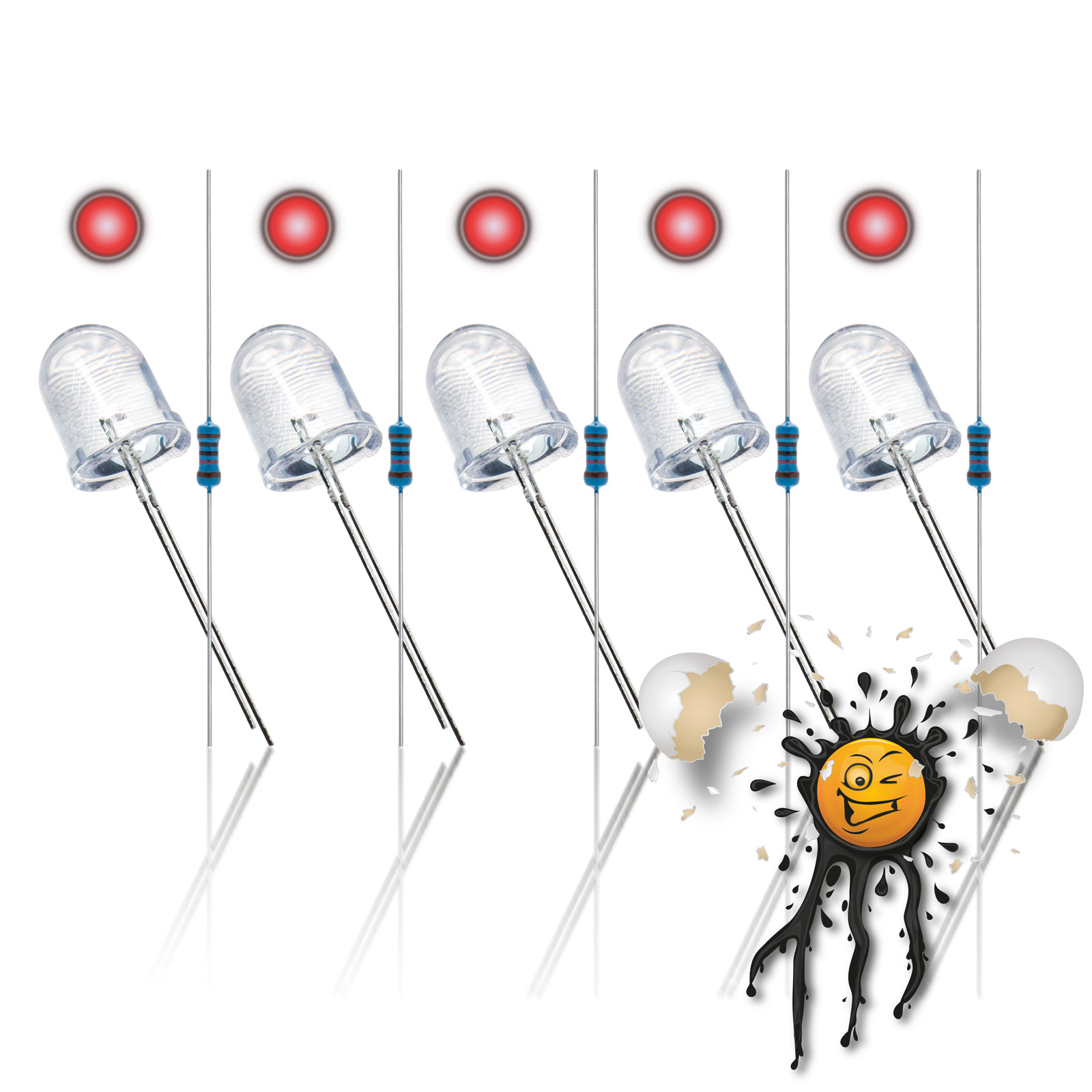 10mm LED klar clear Sortiment 3.3V 5V 6V 9V 12V red blue white yellow green 10-Teile |