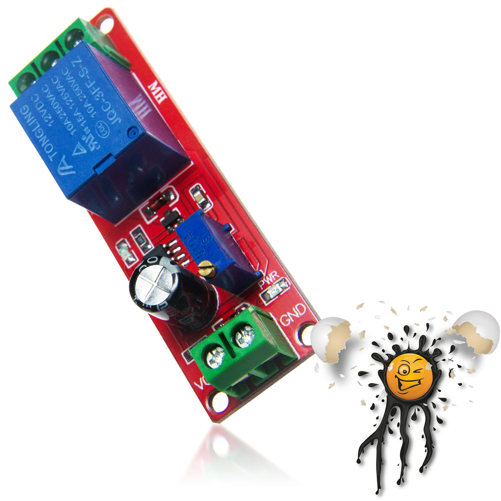 NE555 Verzögerungs-relais Mittels dem integrierten Potentiometer kann die Verzögerung von 0-10 Sekunden eingestellt werden.