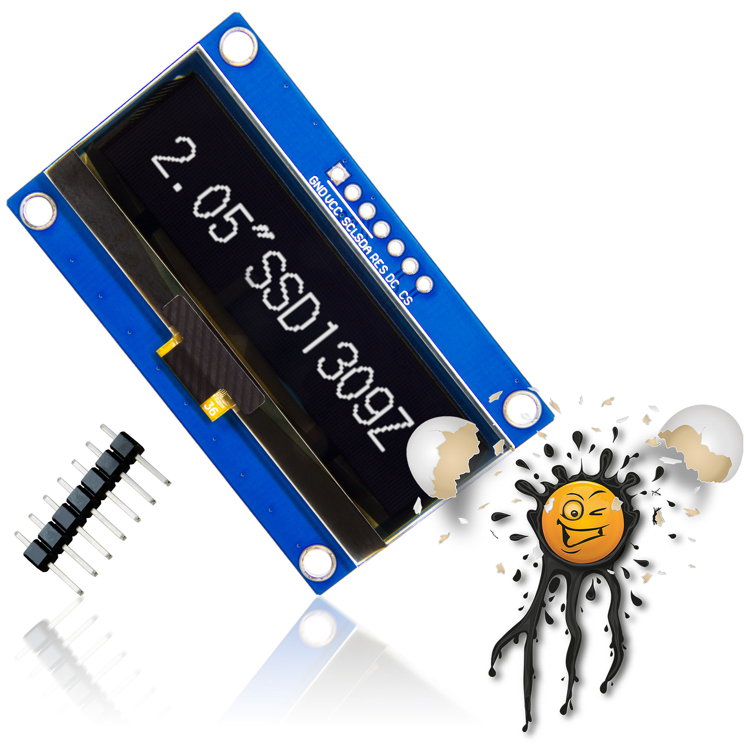 Das 2.05 inch OLED Display basiert auf dem SSD1309 Controller und unterstützt sowol die I2C als auch die SPI Schnittstelle und unterstützt typische MCU’s wie beispielsweise: