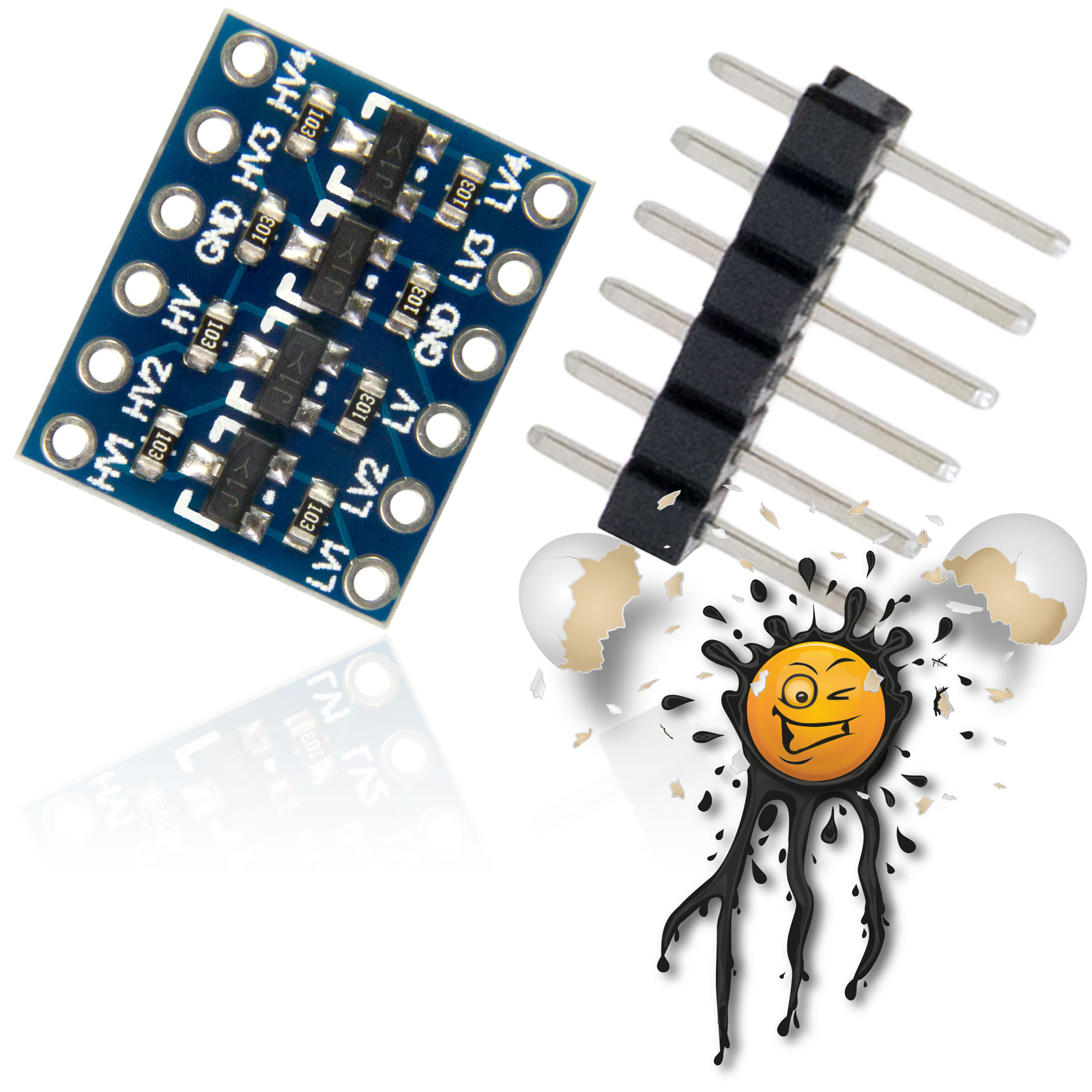 The 4 Channel Logic Level Converter is optimized for converting voltage Level of serial Signals. 4 Channel TTL UART Level Shifting Simply connect input voltage to HV and GND and needed output voltage to LV and GND. Notes:2 piece pinheader (6 pins) are included with 4 channel logiclevel converter. |
