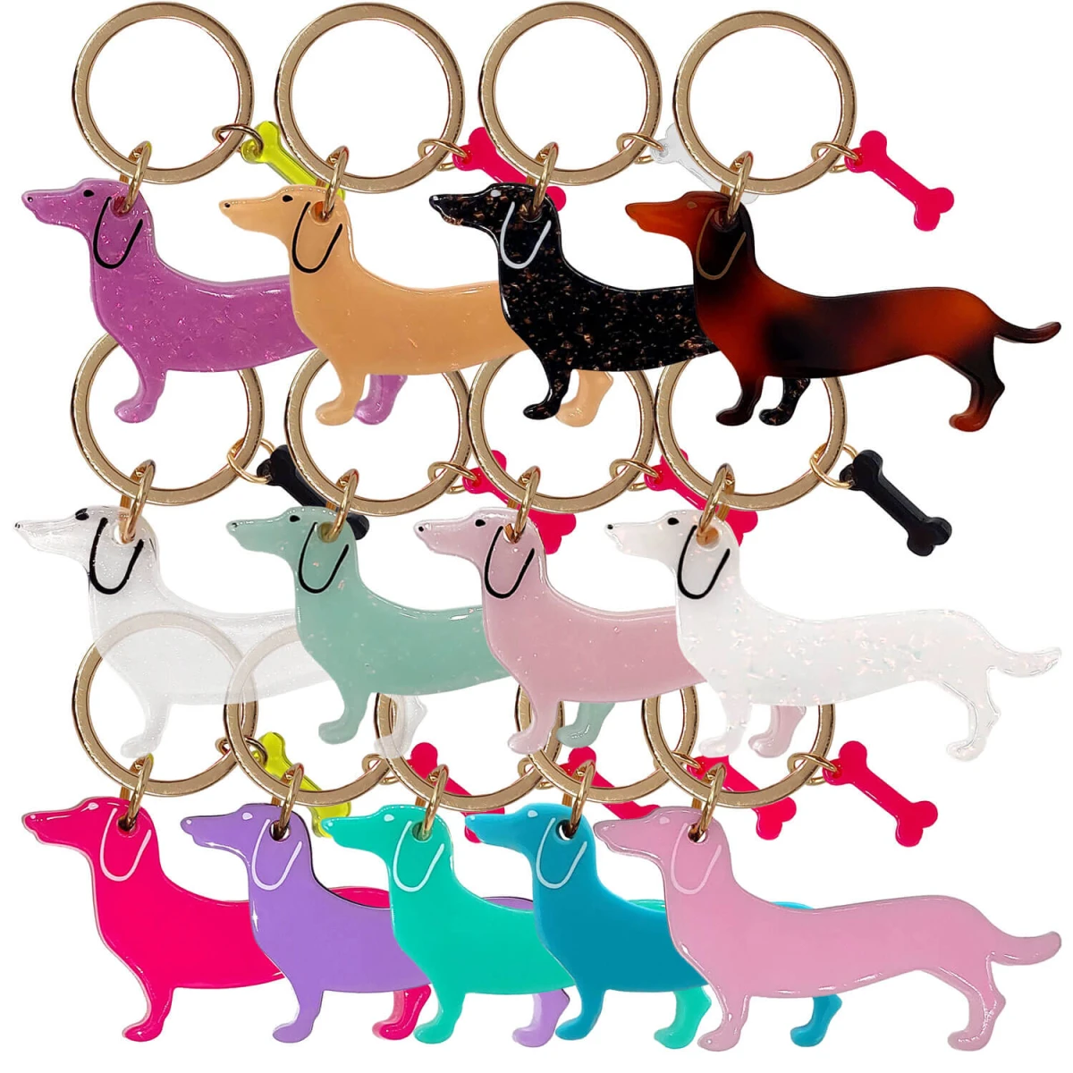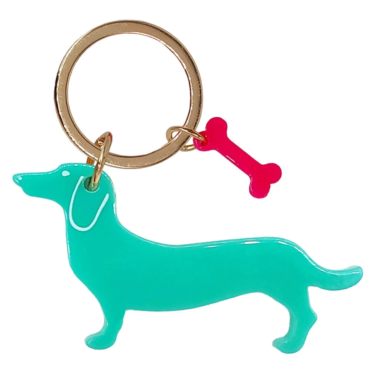 Acryl Schlüsselanhänger „Dackel“ einfarbig mit buntem Knochen (verschiedene Motive)