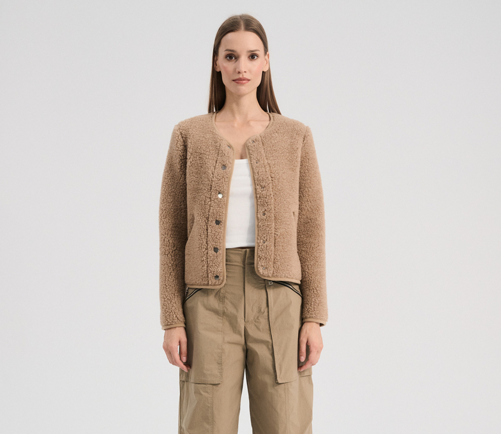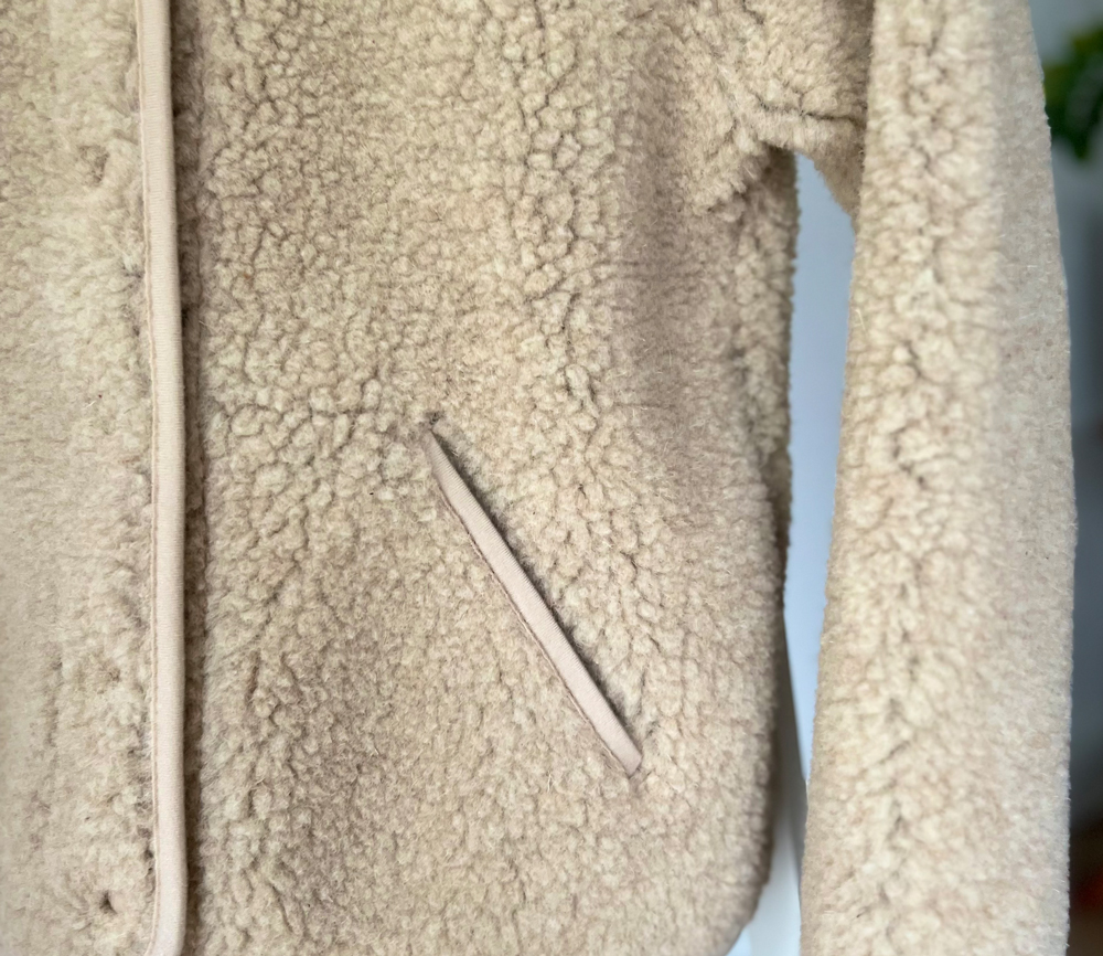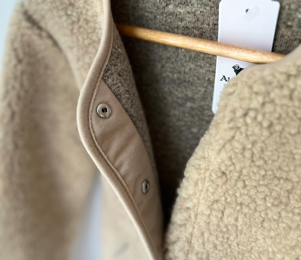 - ULTRALEICHTE WOLLE 100 % Wolle in einem Fleece mit Schaffellstruktur und einer sehr leichten Formel. Der Stoff zeichnet sich durch außergewöhnliche Weichheit und Elastizität aus, wodurch er uns sanft umhüllt. Charakteristisch für dieses Material ist seine schwarze Basis, die die Farbe des verwendeten Wollvlieses intensiv zur Geltung bringt.