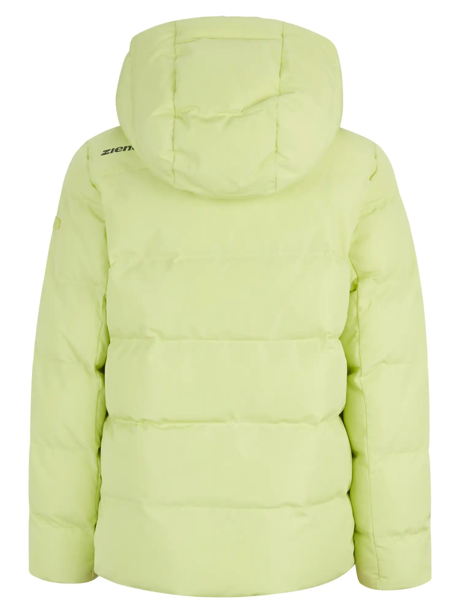 Die warme und modische ZIENER Skijacke AMANI JUNIOR für Mädchen ist die perfekte Wahl für Freizeit und Sport auf der Piste. Die Skijacke bietet dank der atmungsaktiven, wasser- und winddichten ZIENER AQUASHIELD® Membran (mit einer Wassersäule von 10.000mm und einer Atmungsaktivität von 10.000g/m²/24h) höchsten Schutz und Komfort. Dekorative reflektierende Elemente sorgen für zusätzliche Sicherheit. Die Jacke punktet mit Details wie einer Skipasstasche, zwei Eingriffstaschen mit Reißverschluss und einem Schneefang. Dank der umweltfreundlichen Imprägnierung ist die Skijacke PFC-frei. Zusätzliche Features sind die Kapuze gemäß der Norm DIN EN 14682 (für Sicherheit von Kinderbekleidung) und die elastischen Ärmelbündchen. Durch die comfortemp® Wattierung von Freudenberg hält die Jacke bei kaltem Wetter zuverlässig warm und macht sie zu einem unverzichtbaren Begleiter für die Skisaison. Die warme und luftig weiche Isolation aus synthetischer Daune garantiert optimale Wärmeisolierung bei minimaler Gewichtsbelastung. Mit deiser Skijacke von ZIENER sind Mädchen bestens gerüstet für Abenteuer auf der Piste. Das Produkt enthält recyceltes Material ? für einen ressourcenschonenden Umgang.