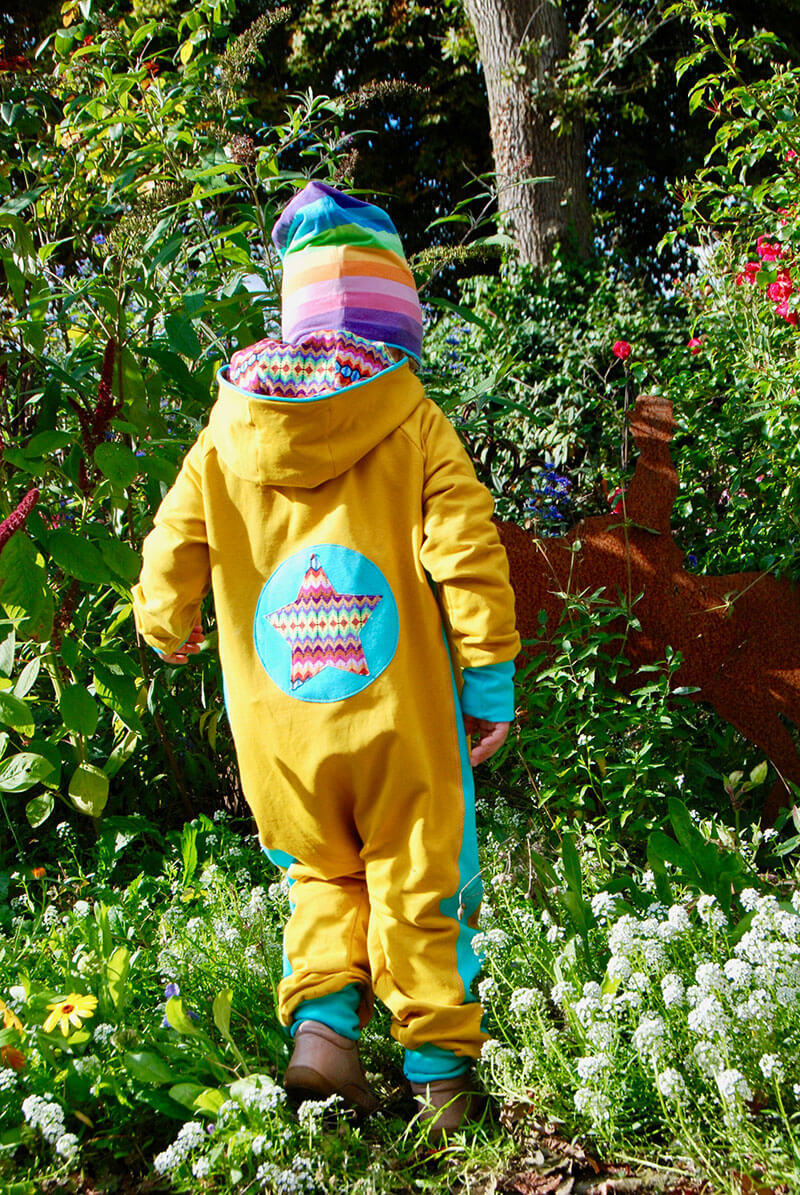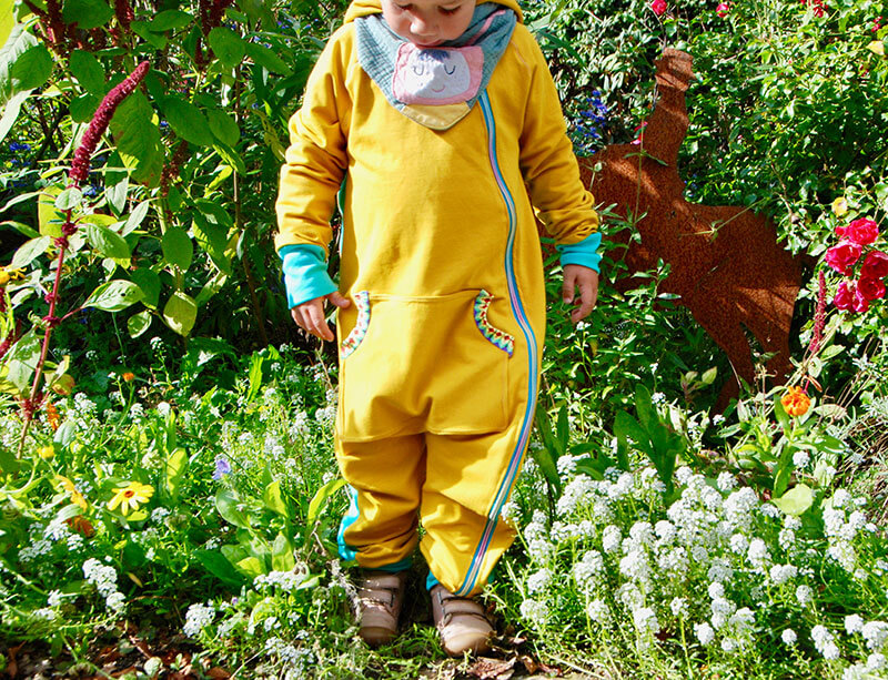 Dieser Anzug kann grundsätzlich aus allen Stoffen genäht werden. Für blutige Anfänger ist das Modell nicht zu empfehlen, etwas Näherfahrung sollte man schon haben. Das kniffeligste ist das Einnähen des Reißverschlusses. Die Einsatzmöglichkeiten sind vielfältig, ob als Strampler, Hausanzug, Schlafanzug oder Fleeceanzug, spiele doch einfach mit verschiedenen Stoffen und nähe ein ganz besonderes Unikat. Natürlich ist der Schnitt auch wunderbar für Karnevalskostüme geeignet. Im Schnittmuster ist ein Kragen beinhaltet, der ist für die Variante mit dem Futter gedacht. Es gibt 2 Videos von uns wie man diesen Anzug verarbeiten kann. Entweder mit Kapuze und ohne Futter oder mit Kragen und abgefüttert. Somit könnt Ihr den Anzug für das ganze Jahr nähen. Auch für Karneval ist der Anzug leicht abwandelbar, siehe Tigeranzug in Rost.