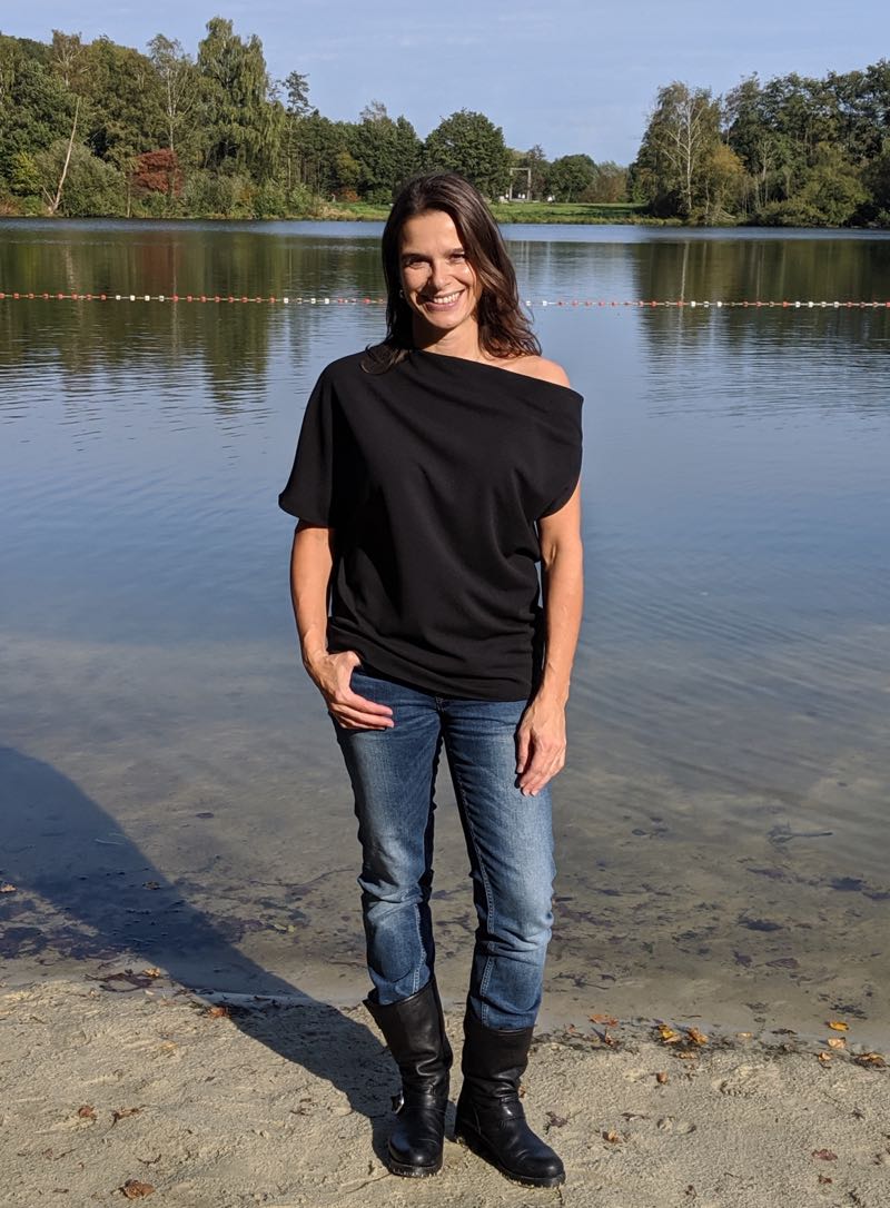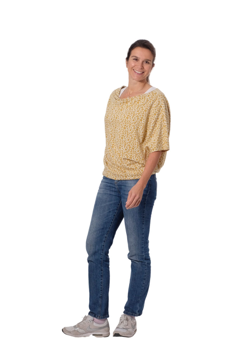 Nähanleitung & Schnittmuster für ein asymmetrisches Damenshirt “Rhoda”, Gr. 158 – 50