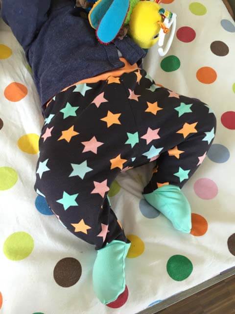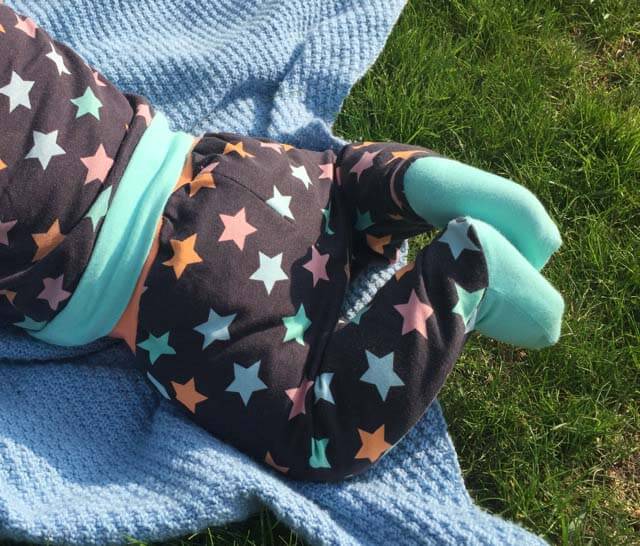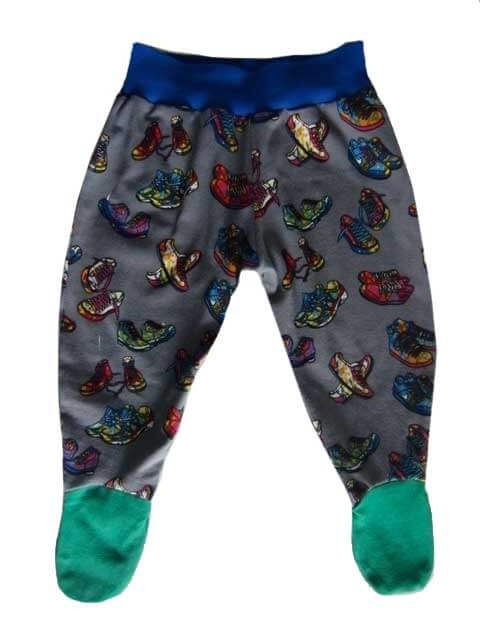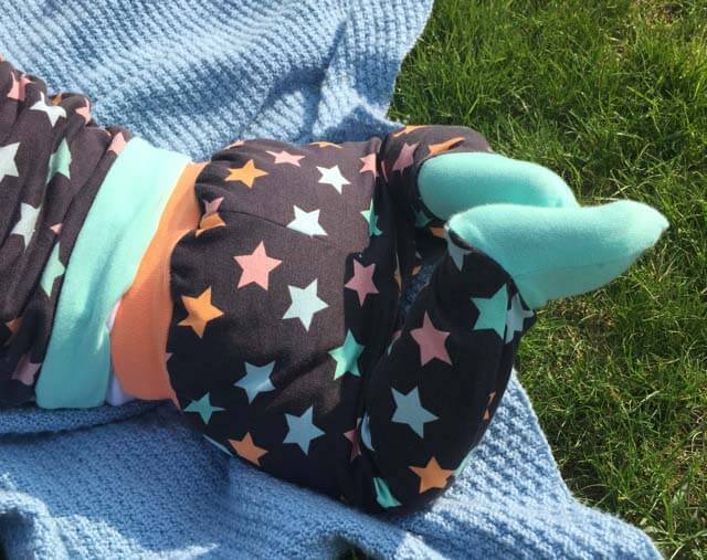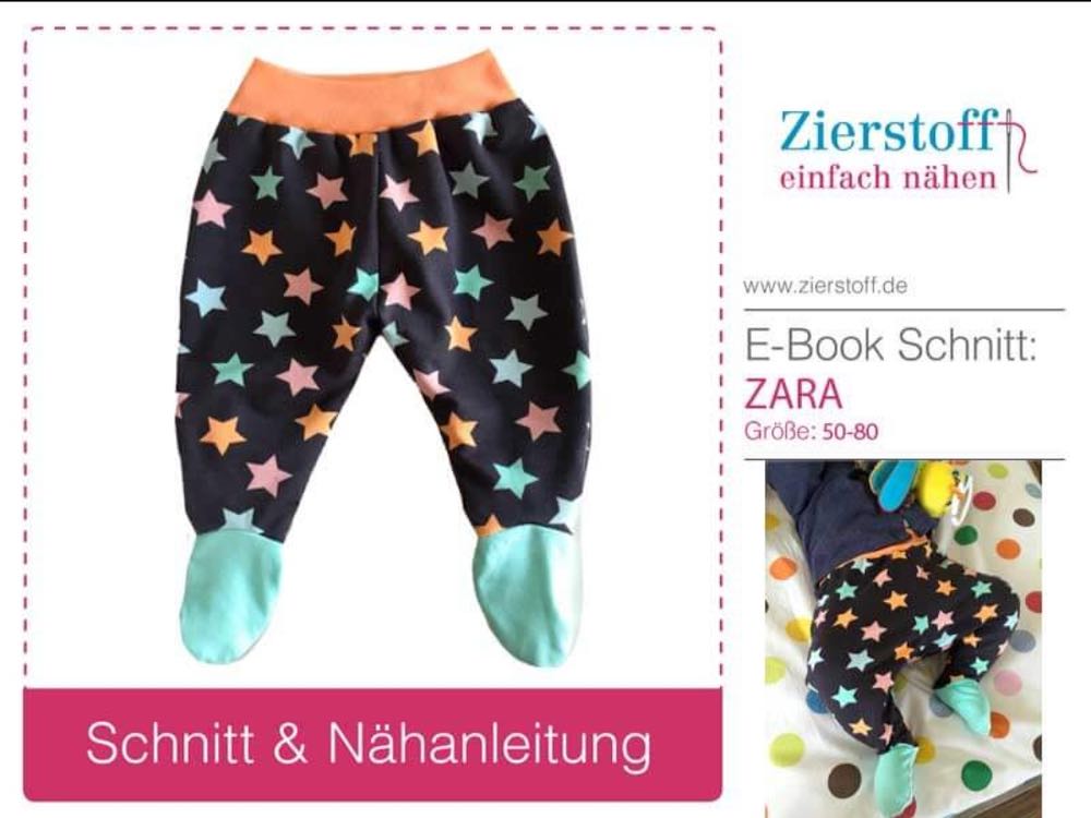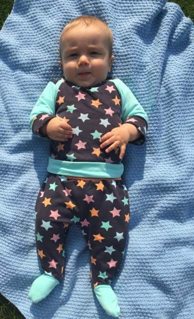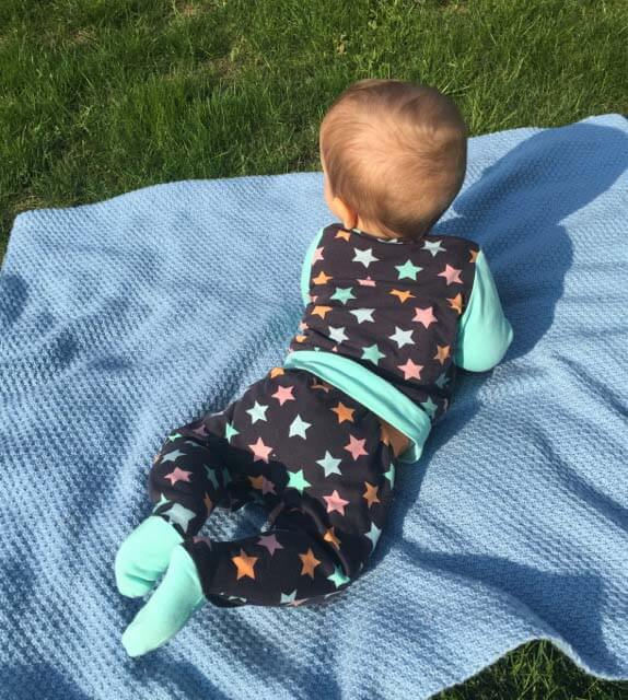 Nähanleitung & Schnitt für eine Unisex Babyhose mit integrierten Füßen “Zara”, Gr. 50 – 80