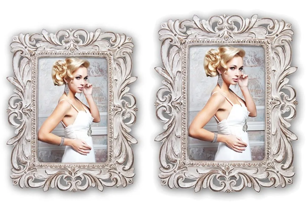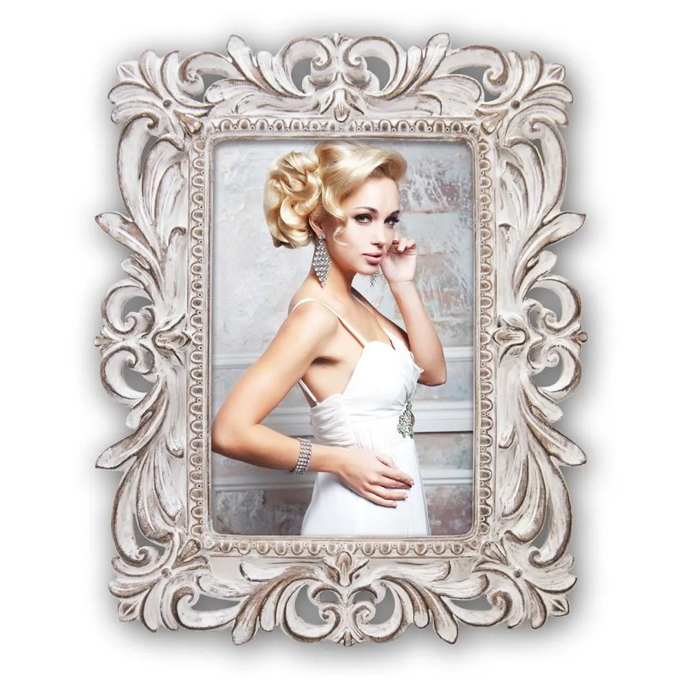 Bilderrahmen Fotorahmen Kunststoff creme verschnörkelte Leisten Vintage 2 Formate