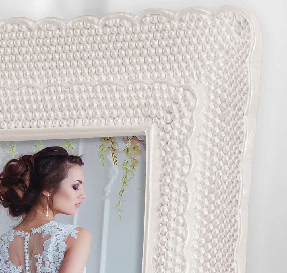• Zauberhafte Bilderrahmen mit weißen Perlen als Verzierung aus Kunstharz. Setzen deine Fotos perfekt in Szene.