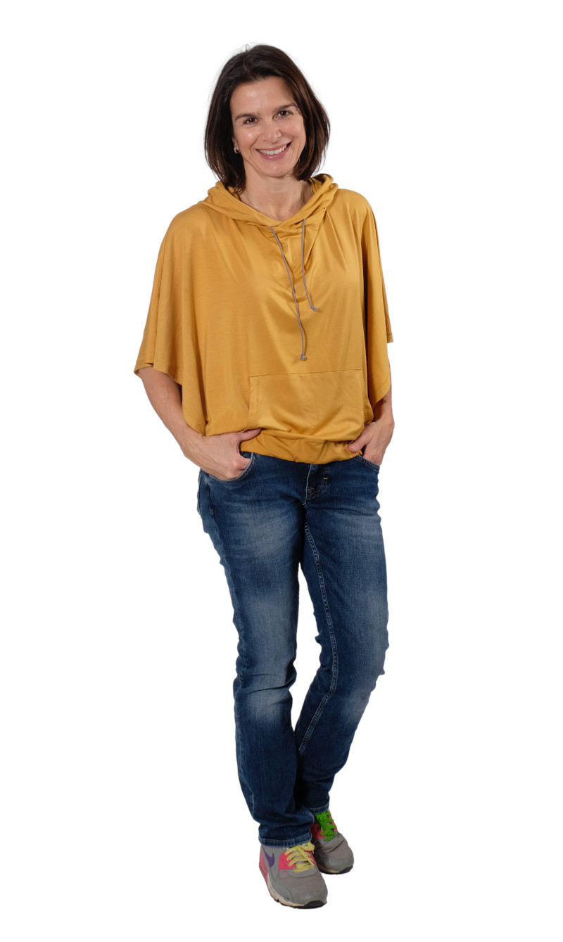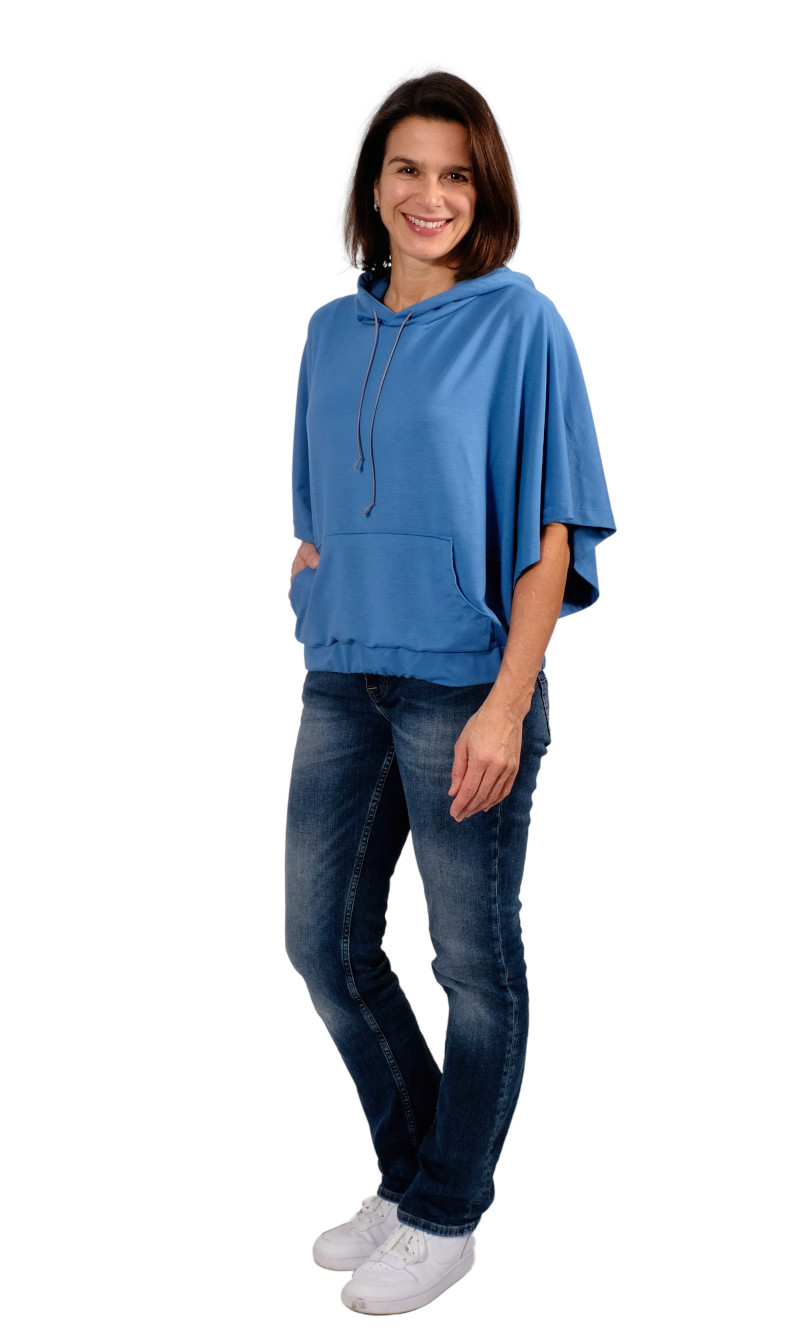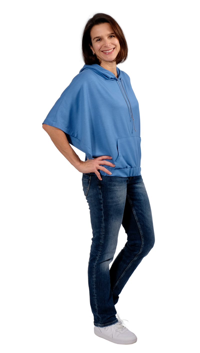 Jersey und dehnbare Stoffe. Dieses Shirt kann aus Sommer und Winterstoffen genäht werden. Wir haben hier hauptsächlich Viskose und Bambus French Terry / Jersey verwendet da diese schön weich fallen.