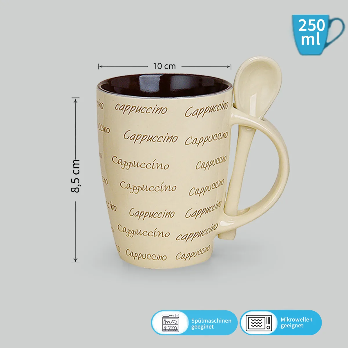 matches21 Cappucchino Tassen Becher 36 Stk. Karton Kaffeetassen Kaffeebecher 10 cm / 250 ml Keramik mit Löffel