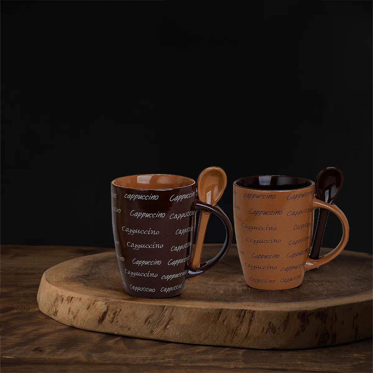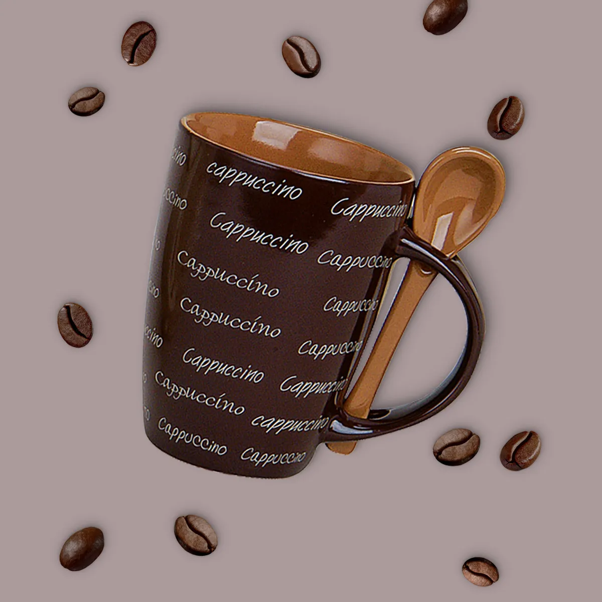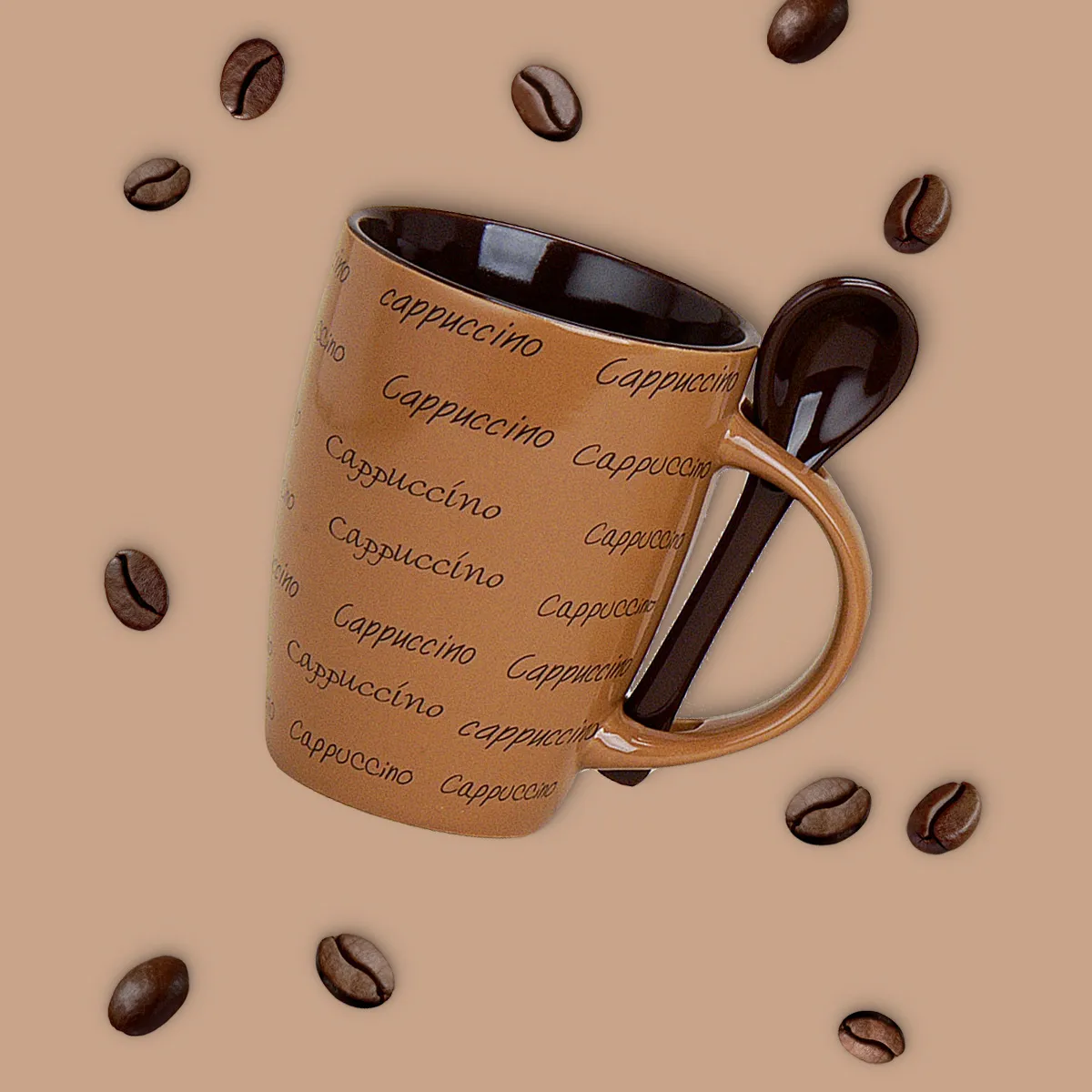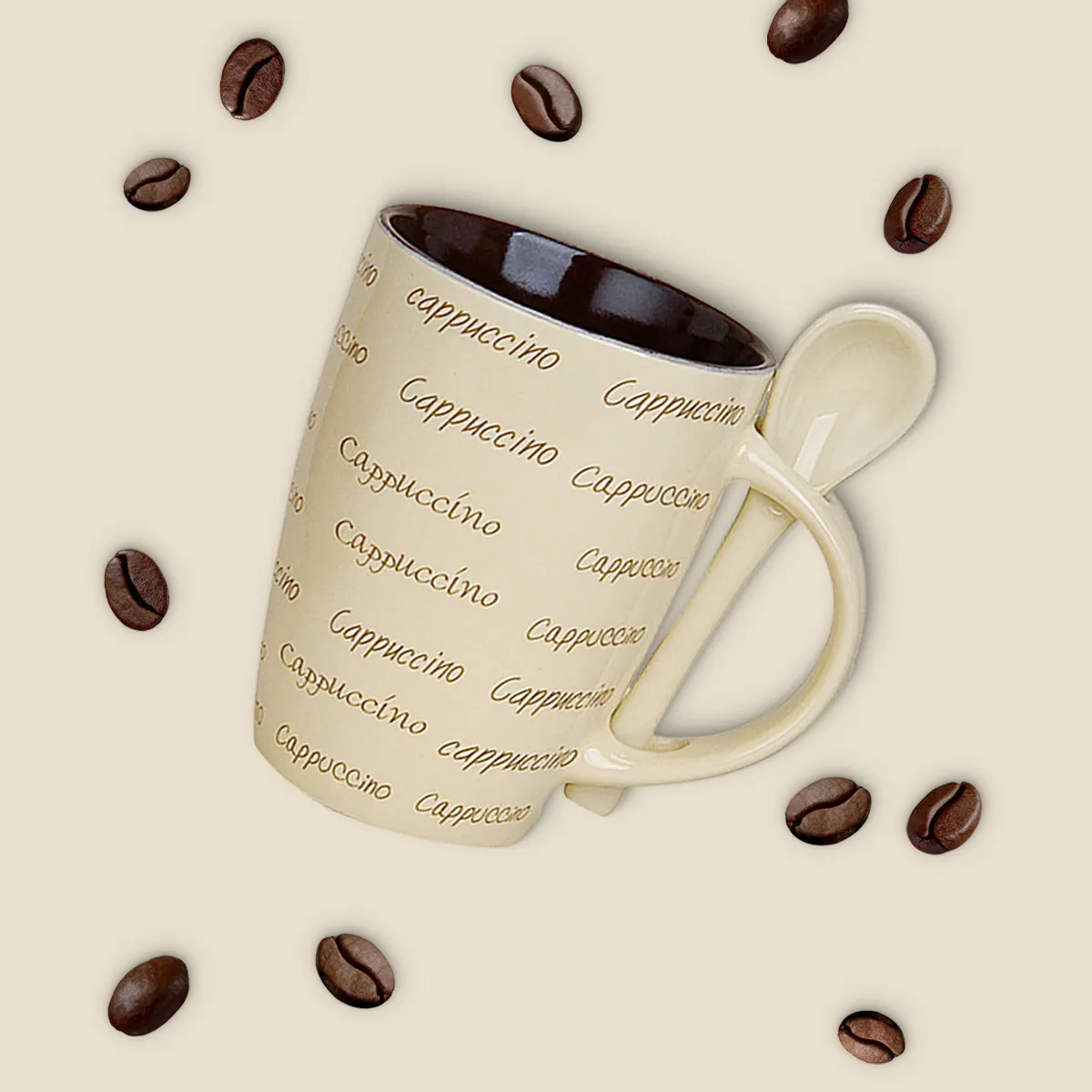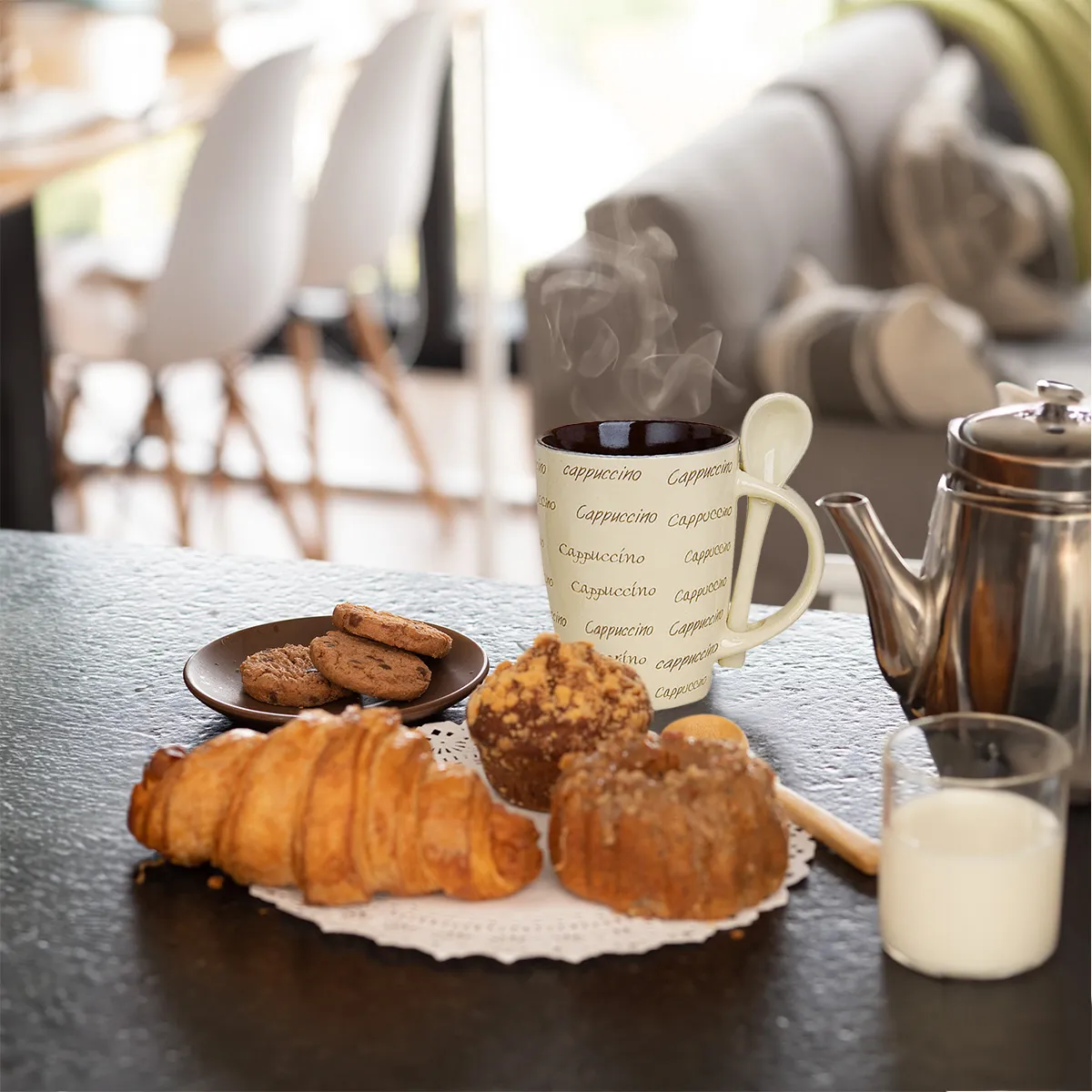 • Schöne, Kaffeebecher im Cappucchino Design mit passenden Löffeln