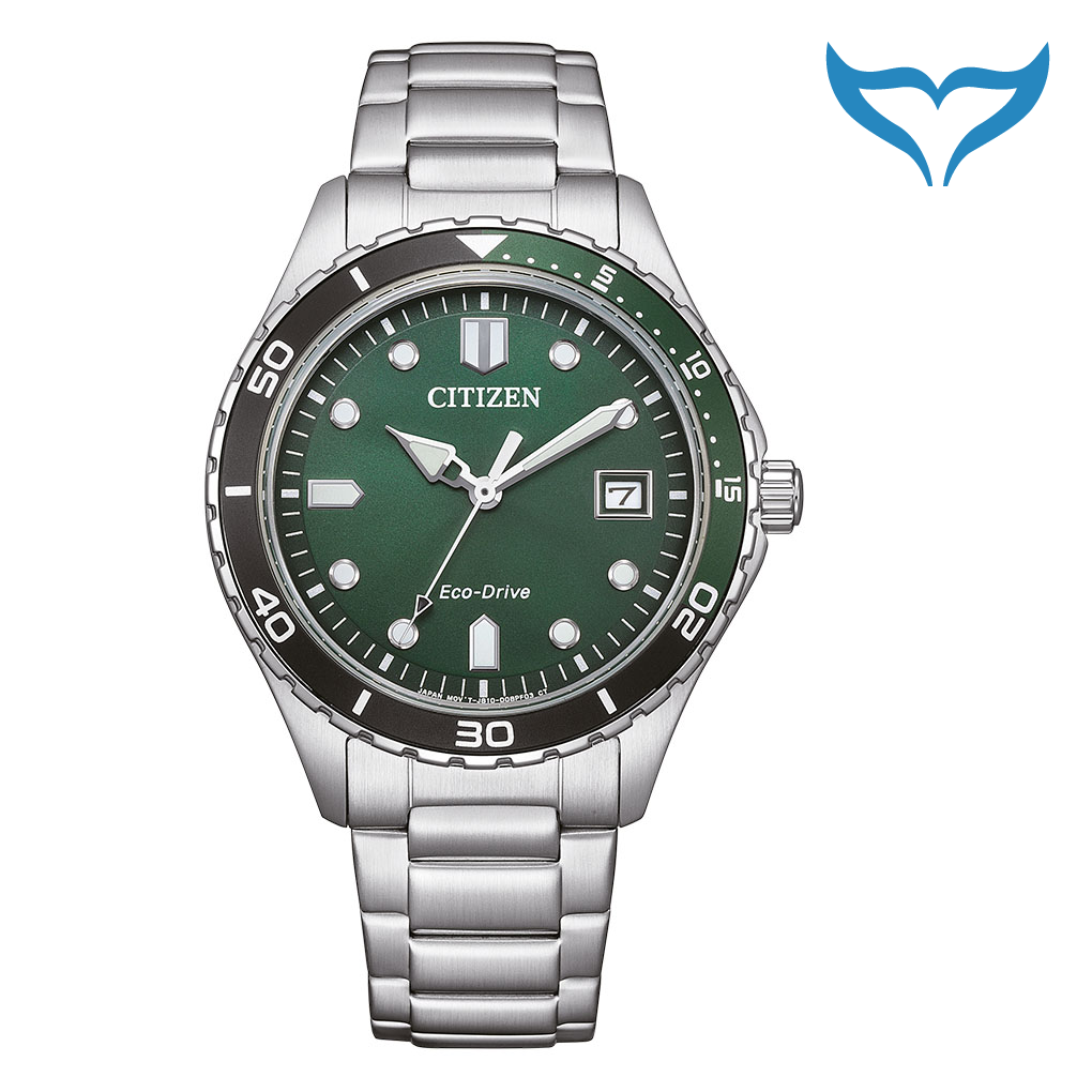 Citizen Sports AW1828-80X Datum Eco Drive Ring Solar Herren grün 10 bar Neu