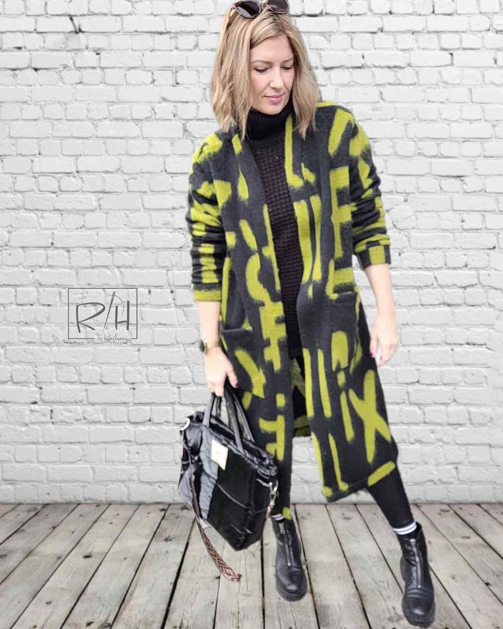 Dies ist eine sehr unkomplizierte Jacke (Cardigan), welche durch den Stoff immer wieder anders daher kommt. Die Jacke wird vorne geknöpft kann aber auch offen getragen werden. Die Jacke ist nicht nur bequem und kuschelig, sondern auch noch überaus praktisch. Die leger geschnittene Jacke ist ein idealer Begleiter für den Frühling und Herbst. Wenn die Jacke einmal genäht ist, wird eine zweite garantiert noch folgen! Ob in kurz oder in lang, sie wird immer wieder gut aussehen! Auch schön zu unsere Hose Alika.