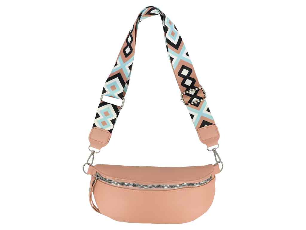 Crossbody-Tasche mit farbigen Taschen-Gurtband, rosa
