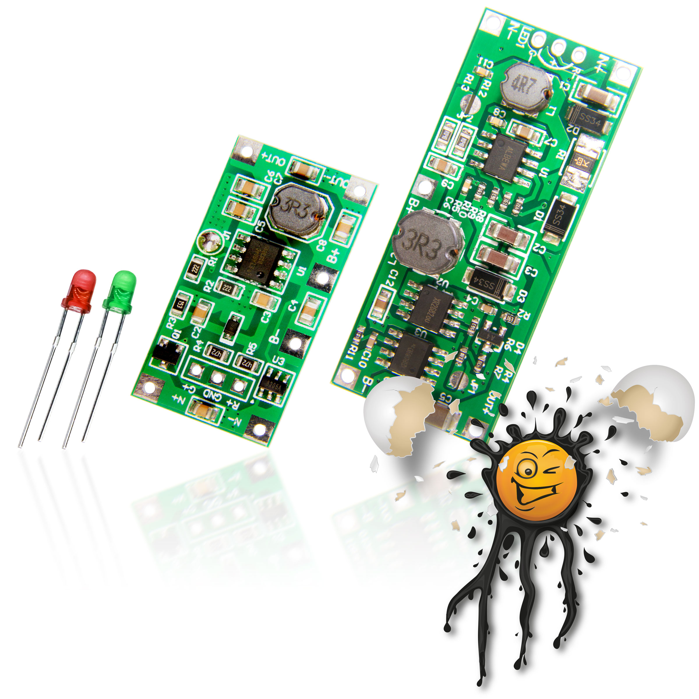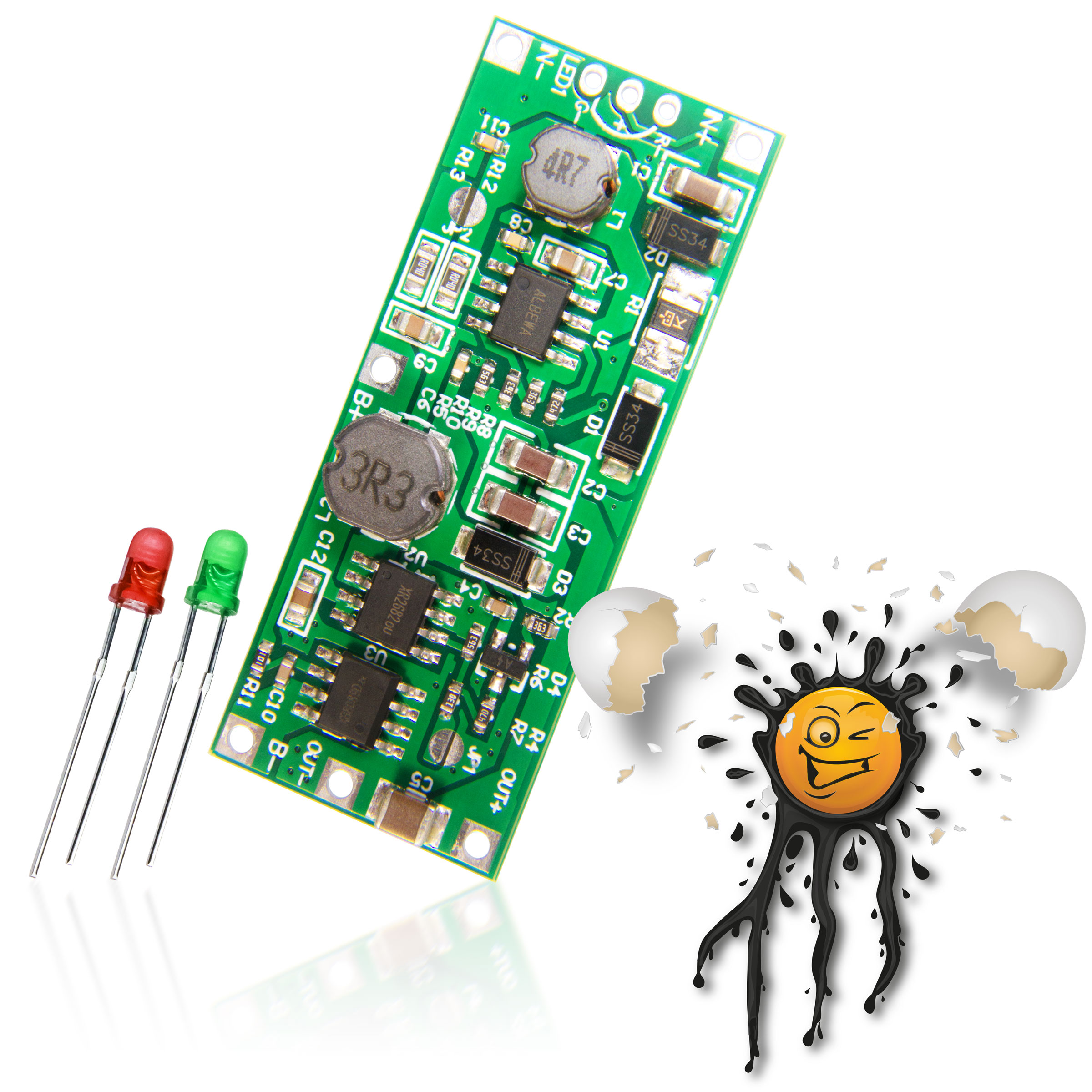 UPS Step Up Charger Module incl. 2 pcs. ø3mm LED’s (indicator LED).