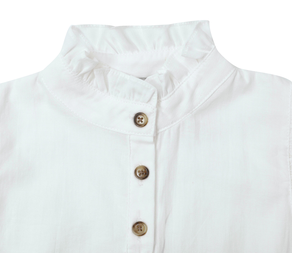 So leicht wie ein Sommermorgen! Diese hübsche Bluse ist so zart wie ein Schmetterling. Die verspielten Schultervolants und die Knopfleiste vorne verleihen einen subtilen, stilvollen Akzent.
