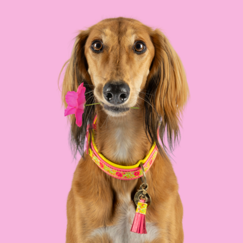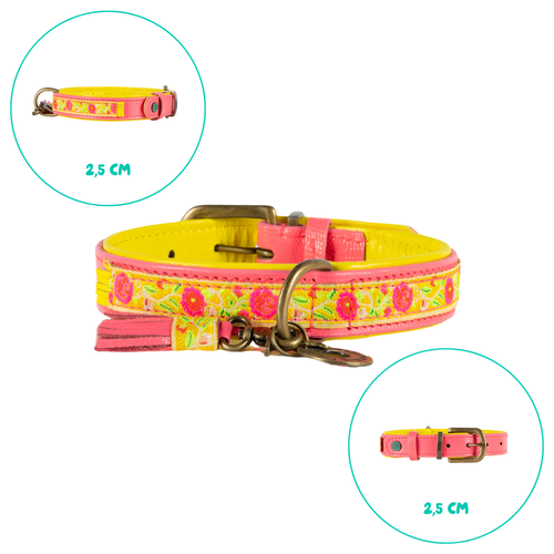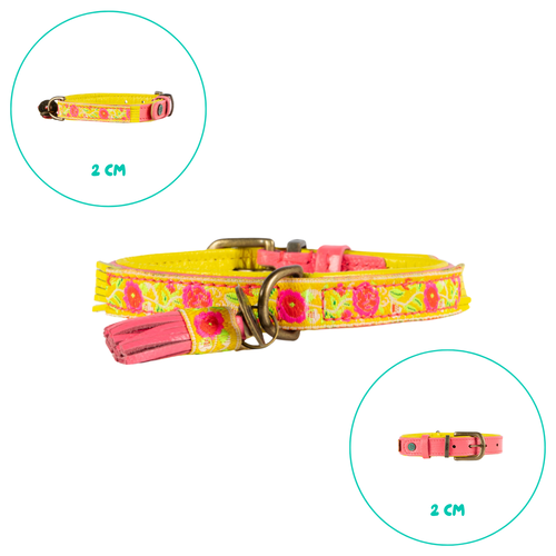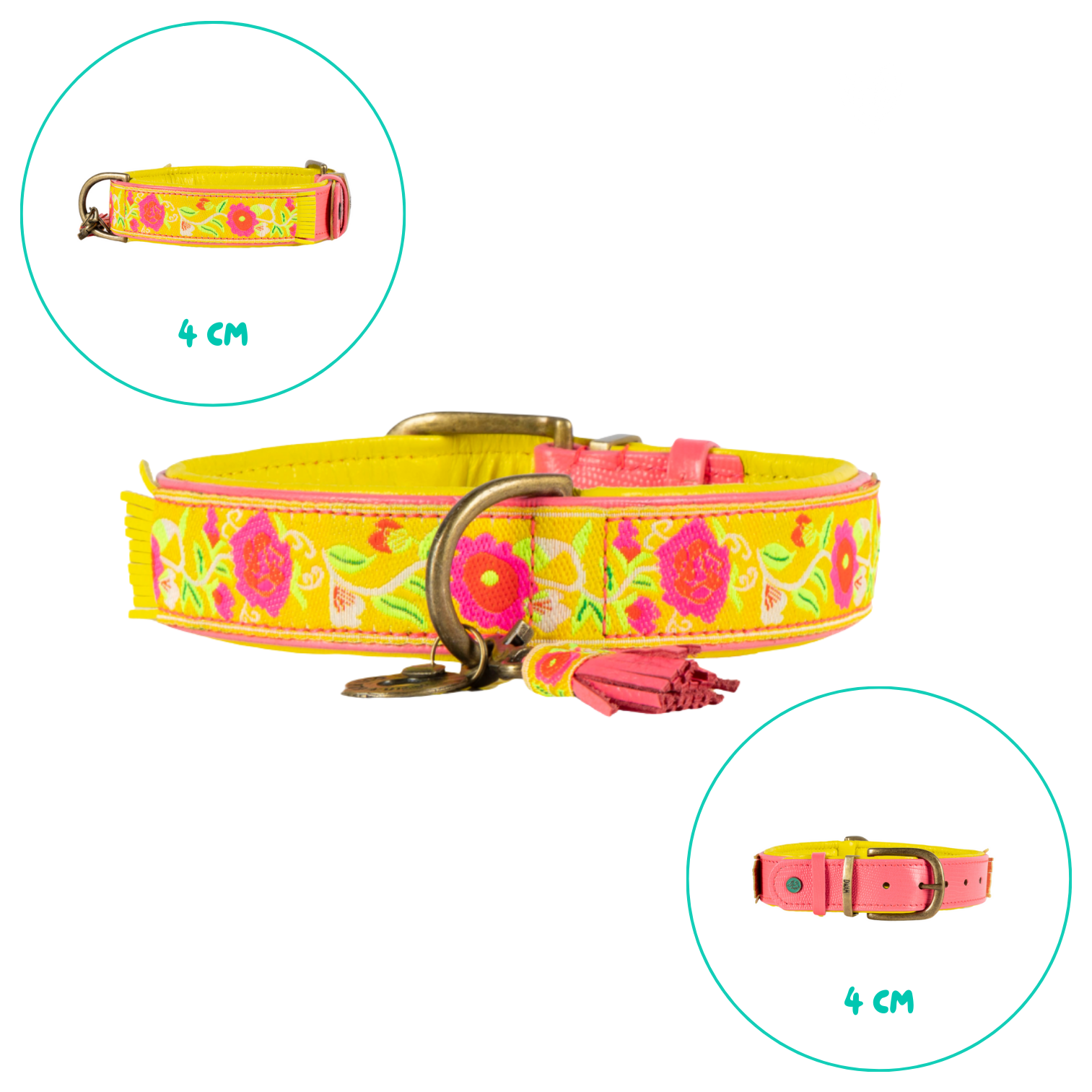 Stilvolles Halsband: Handgestickt auf gelbem Leder mit wunderschönem Gurtband! Rosenliebe <3