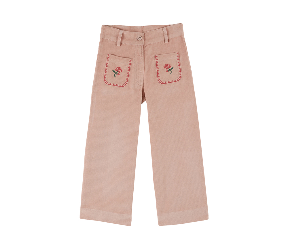 EMILE & IDA – Hose, ‚VELOURS BRODE‘, peony, Baumwolle