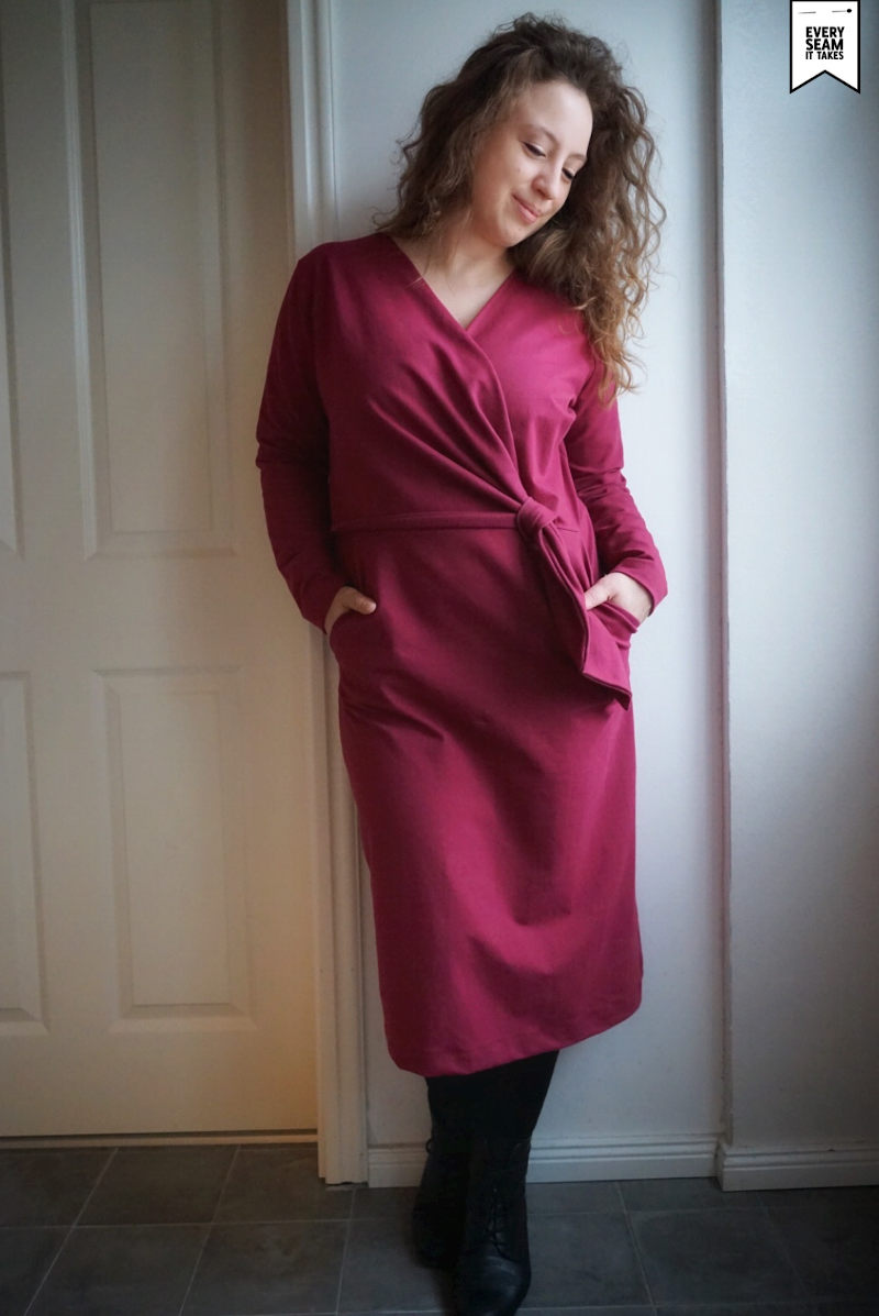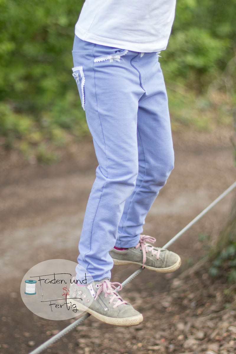 Dieser hochwertige, bi-elastische Denim ist besonders gut für enge Hosen geeignet. Aber auch Röcke, Jacken und sportive Kleider sehen hier gut aus. Der Stoff fällt extrem weich und wird auch oft als “gestrickter Denim” bezeichnet. Er ist mit einem dickeren Sweatshirtstoff vergleichbar. Abbildung Shirt Mabele aus der Fibre Mood Magazin und unsere Hose Hannah. Kleid Adelina aus einem vergleichbaren Material in Beere.