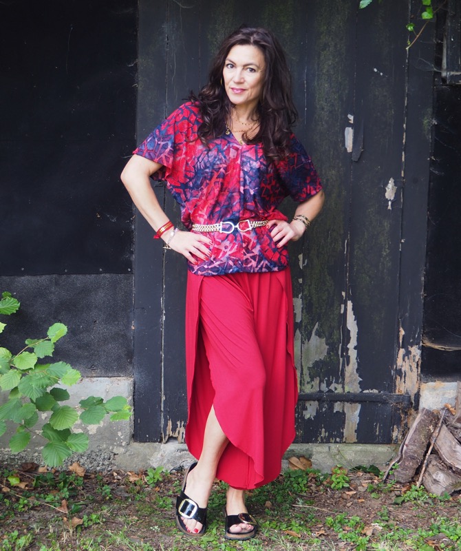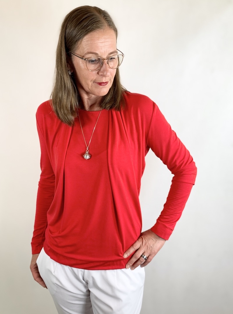 Ein hochwertiger French Terry Stoff aus Bambus/Elasthan in Rot. Die Rückseite weist die typische Schlingenstruktur auf. Das Material ist ideal für Sweatshirts und Hosen. Er trägt sich angenehm auf der Haut. Abbildung Schnittmuster Rock Fabienne in Grau in French Terry. Aus Jersey diverse Schnittmuster wie z.B. Shirt Sue und Wasserfallshirt Kat, Kleid Maresa, Kleid Sandy, Shirt Sue und Hose Naomi in anderen Farbstellungen. Dieser Stoff ist nur noch begrenzt am Lager und in 0,5 Meter Einheiten zu kaufen. Natürlich werden alle gekauften Einheiten am Stück geliefert.