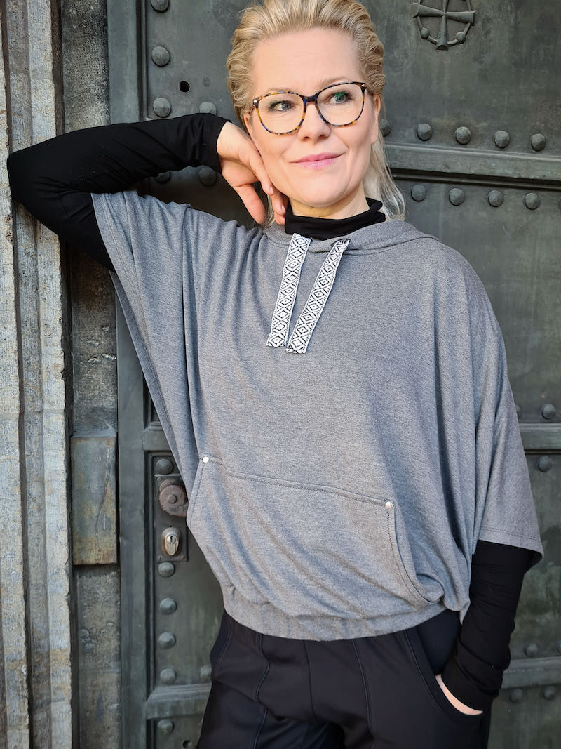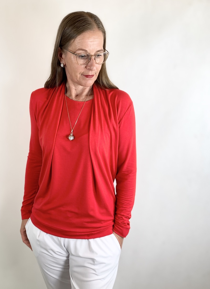 Ein hochwertiger French Terry Stoff aus Bambus/Elasthan in Rot. Die Rückseite weist die typische Schlingenstruktur auf. Das Material ist ideal für Sweatshirts und Hosen. Er trägt sich angenehm auf der Haut. Abbildung Schnittmuster Rock Wilka und Hose Aimee in Hellgrau. Rock Fabienne in Grau in French Terry. Aus Jersey diverse Schnittmuster wie z.B. Shirt Sue und Wasserfallshirt Kat, Kleid Maresa, Kleid Sandy, Shirt Sue und Hose Naomi in anderen Farbstellungen.