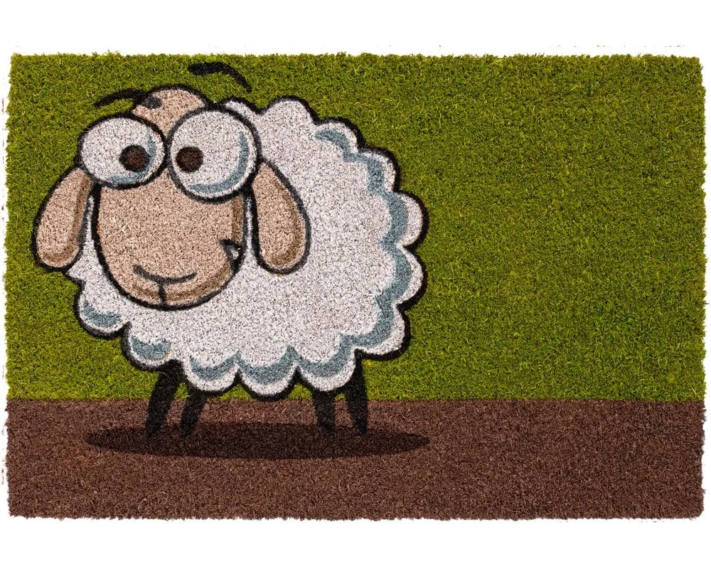 matches21 Kokosmatte Fußmatte Fußabstreifer KOKOS INDOOR bunt bedruckt mit dem Motiv lustiges Schaf – 1 Stk 40×60 cm