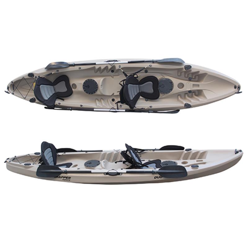 Mit seinen zwei Sitzen ist unser Tandemkajak (2+1) perfekt für gemeinsame Ausflüge, z.B. mit der Familie. Zwischen den Sitzen ist zudem genug Platz für ein Kind. Die Sitze sind herausnehmbar und können so in der Mitte montiert werden, dass Sie das Kajak auch alleine nutzen können.