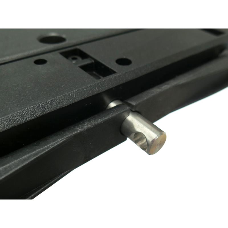 Für leichtes Fixieren und Abnehmen des Motors durch Ziehen des Sicherungsbügels.
