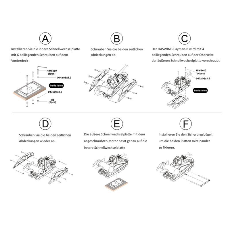 Die Bug-Montageplatte mit Schnellverschluss (Schnellwechselplatte) wurde vom Hersteller für den für Cayman-B 80 GPS 1.6G / Herstellernummer 50739 modifiziert und die Stabilität und Steifigkeit der Konstruktion nochmals erhöht. Der Edelstahlbügel, der die beiden Platten miteinander fixiert, wurde deutlich dicker. Wir bitten dies zu berücksichtigen.