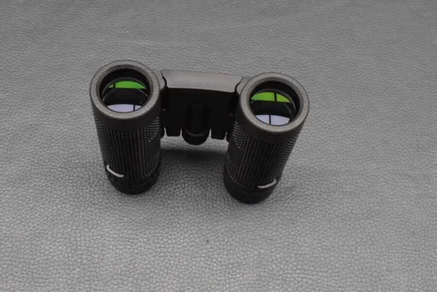Mit einem Doppelscharnier-Design passt dieses kompakte Fernglas