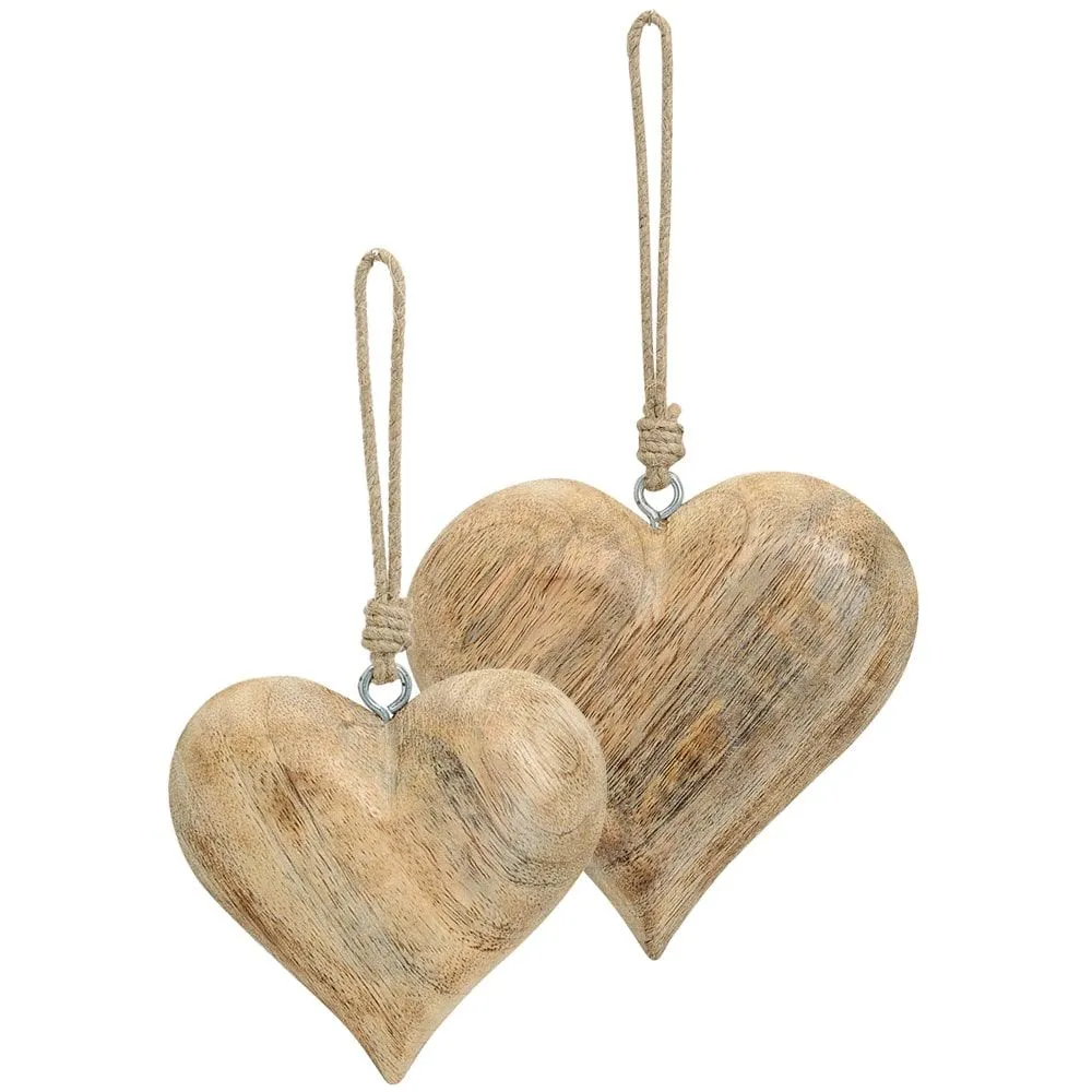 matches21 Herzen Hänger Fensterhänger Dekohänger Dekoherzen Holzherzen Anhänger Mango Holz braun rustikal 1 Stk 2 Größen