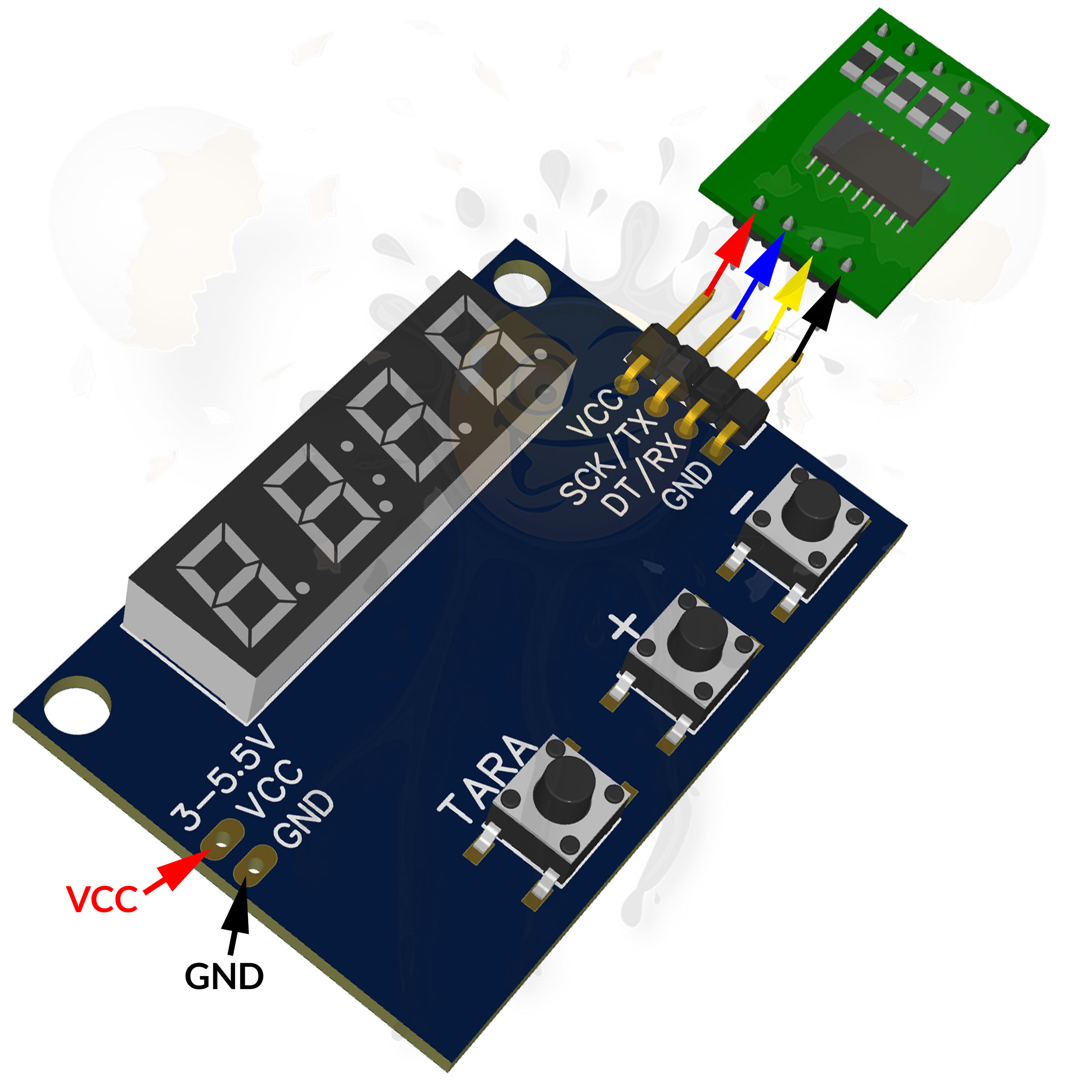 Hier gibt es den passenden 1KG Gewichtssensor und HX711 Modul Hier gibt es den passenden 5KG Gewichtssensor und HX711 Modul Hier gibt es den passenden 10KG Gewichtssensor und HX711 Modul Hier gibt es den passenden 20KG Gewichtssensor und HX711 Modul Hier gibt es den passenden 50KG Gewichtssensor und HX711 Modul Hier gibt es den passenden 100KG Gewichtssensor und HX711 Modul Hier gibt es den passenden 200KG Gewichtssensor und HX711 Modul Die Werteanzeige erfolgt in Gramm. Gewichtssensor Anzeigen modul Das Wägezellen Anzeigen Modul verfügt über 3 Taster