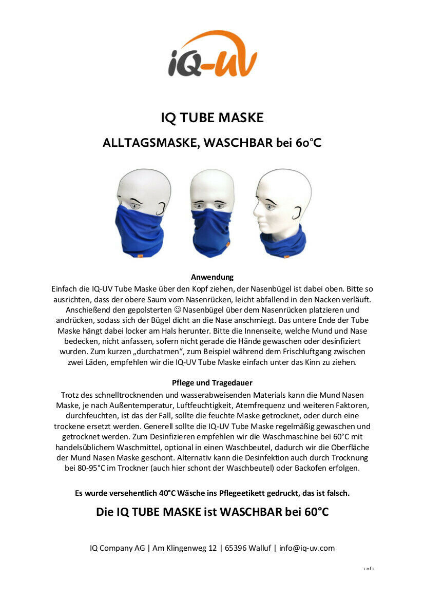 – Generell sollte die IQ-UV Tube Maske regelmäßig