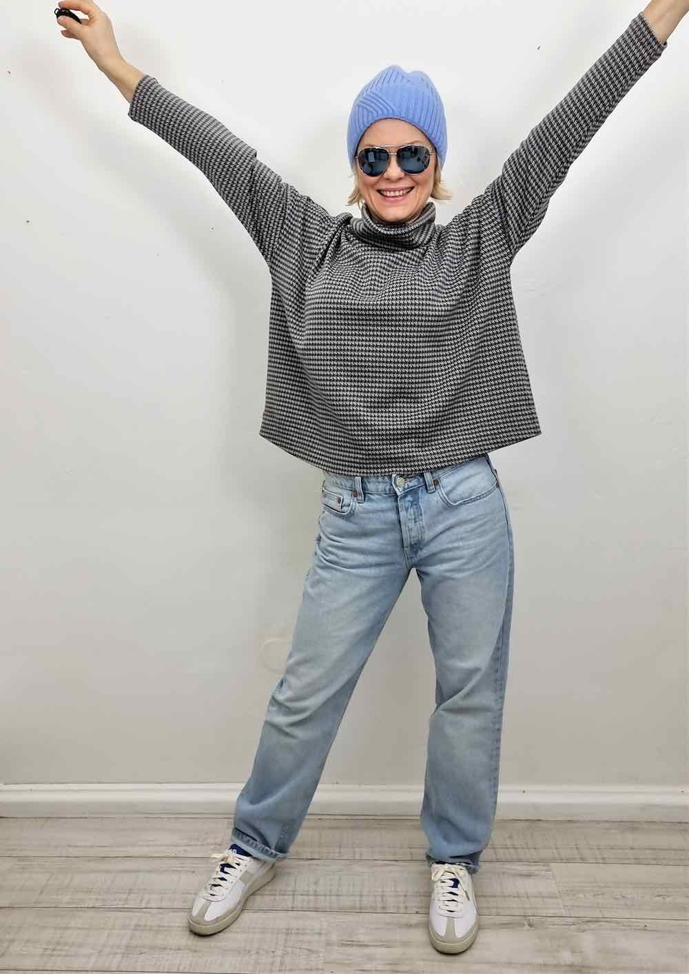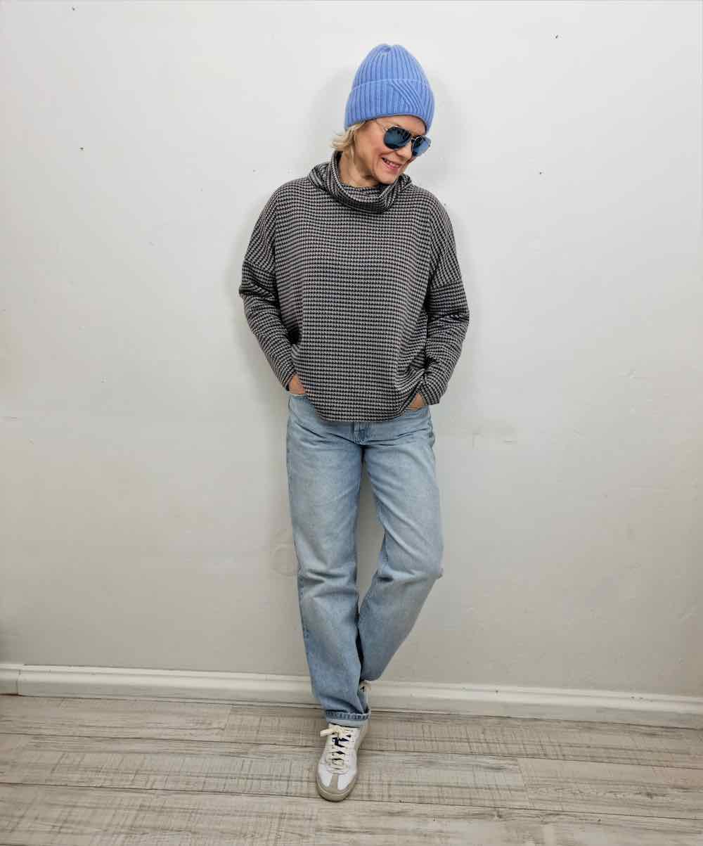 Pflege: Auf 30 Grad waschen, bei Stufe 1 bügeln. Nicht in den Trockner geben.