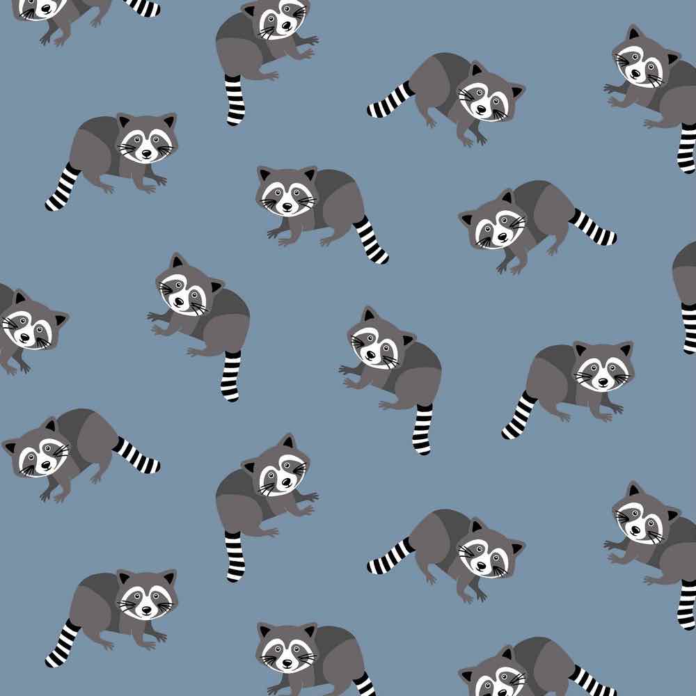 Ein sehr hochwertiger Jersey mit Waschbären bedruckt. Ideal zum Nähen von Kinderbekleidung.