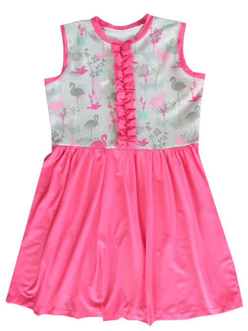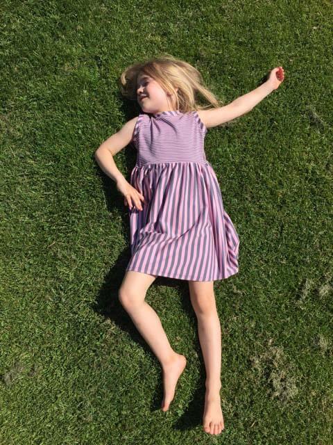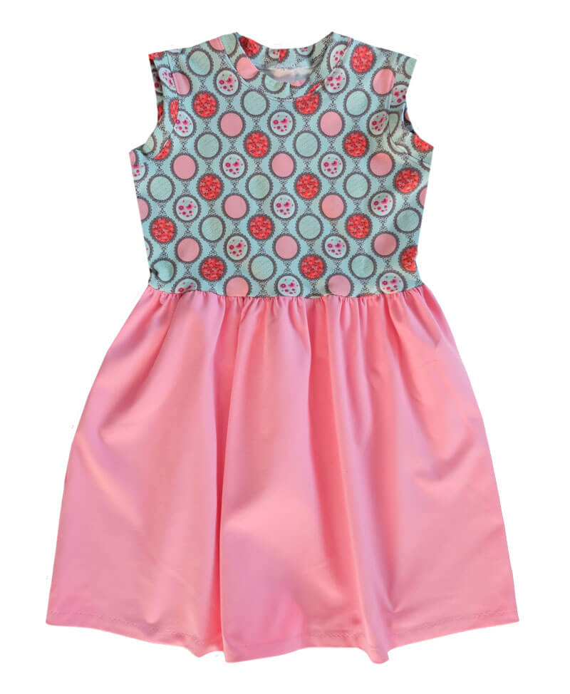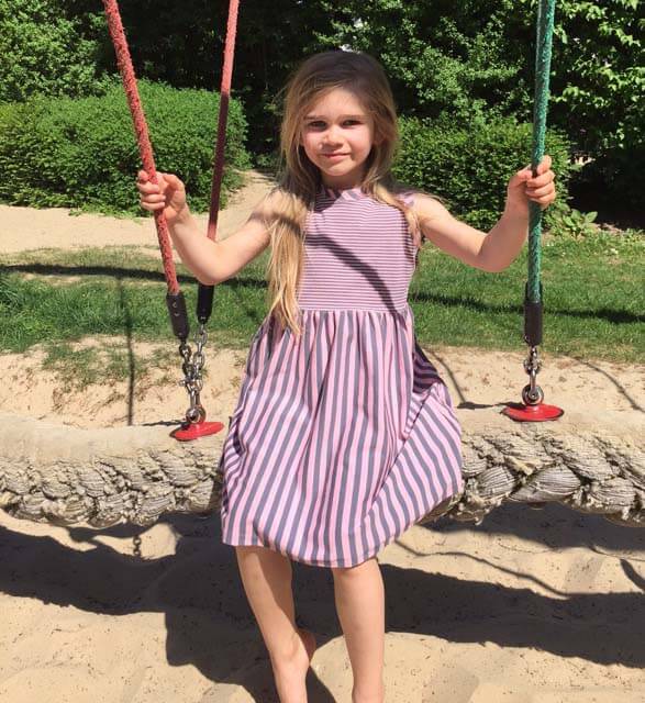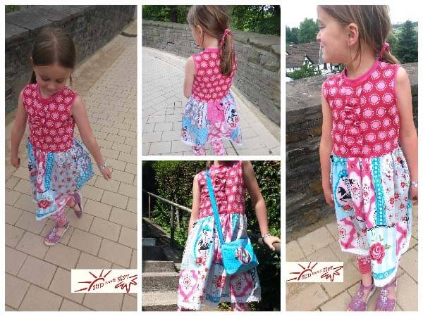Dieses unkomplizierte Kleid ist schnell genäht und macht richtig was her. Es kann auf unterschiedliche Arten genäht werden und sieht je nach Stoffkombination immer wieder anders aus. Ein ideales Sommerkleidchen, das sich sehr gut für die ersten Nähversuche mit Jerseystoffen für Anfänger eignet.