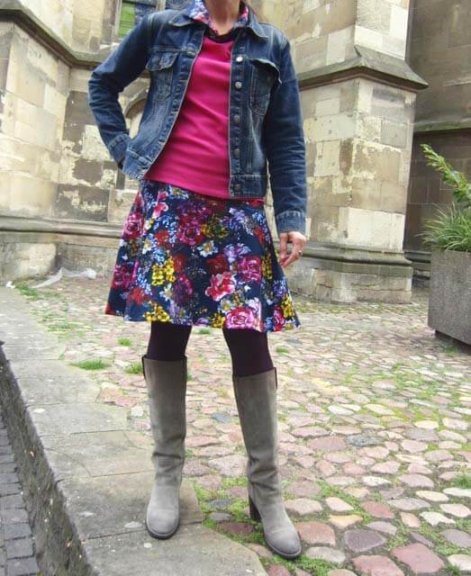 Materialempfehlung: Jersey oder dehnbare Stoffe. Je mehr Stand der Stoff hat, desto glockiger fällt der Rock.