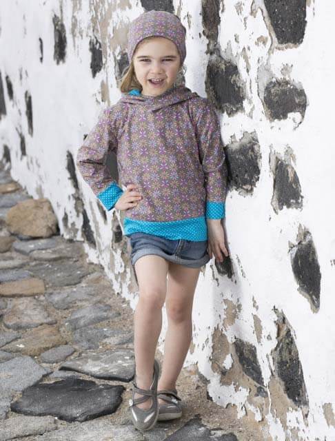Ein trendiges Sweatshirt für Jungs und Mädels. Der Schalkragen oder die Kapuze läuft von der Nahtführung an der vorderen Mitte spitz zu und kann mit oder ohne Ösen verarbeitet werden.