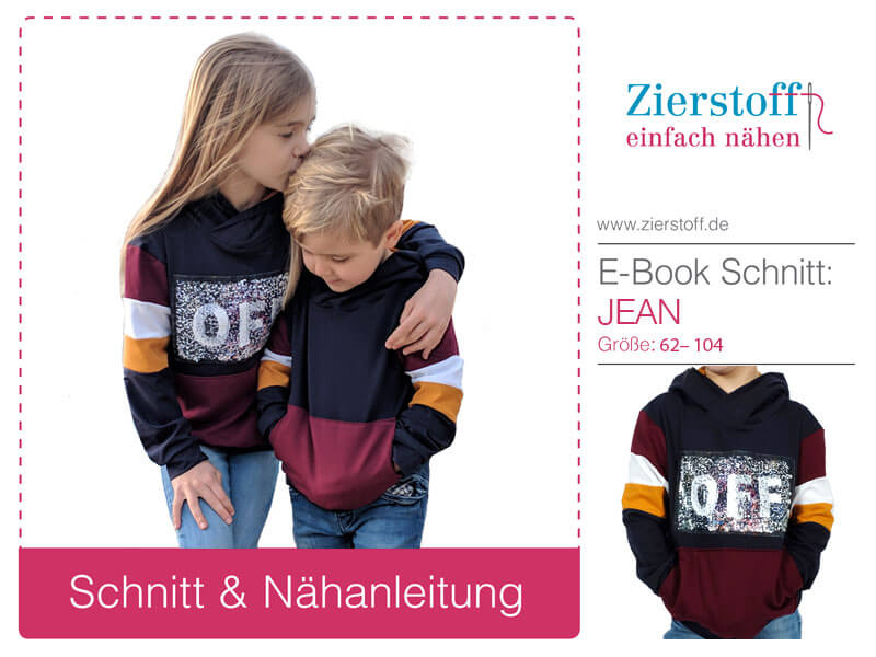 Nähanleitung & Schnitt Kapuzensweatshirt “JEAN”, Gr. 62 – 104