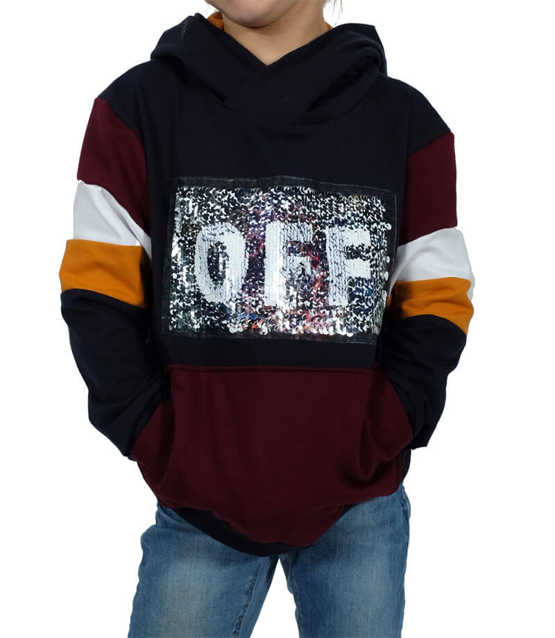 Dieses tolle Sweatshirt ist ein Hingucker in jedem Kleiderschrank. Der Schnitt hat eine aufgesetzte Tasche und eine doppelte Kapuze und verschiedene Streifen im Ärmel. Spiele doch einfach mit verschiedenen Stoffen und nähe ein ganz besonderes Unikat. Deiner Kreativität sind hier keine Grenzen gesetzt!