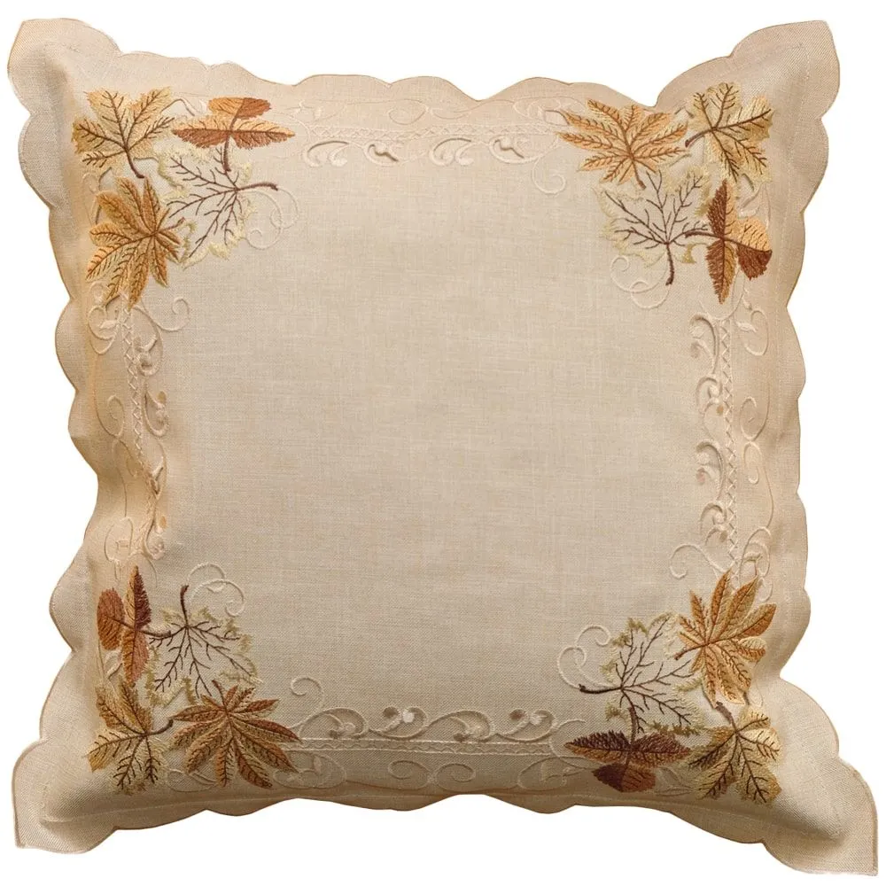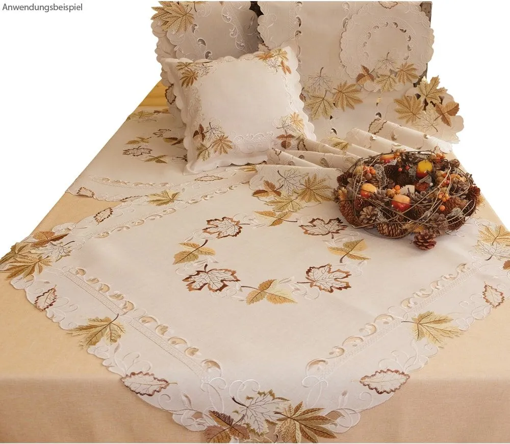matches21 Kissenbezug Kissenhülle Heimtextilien Lochstickerei Blätter Herbstlaub beige bunt 1 Stk 40×40 cm Polyester
