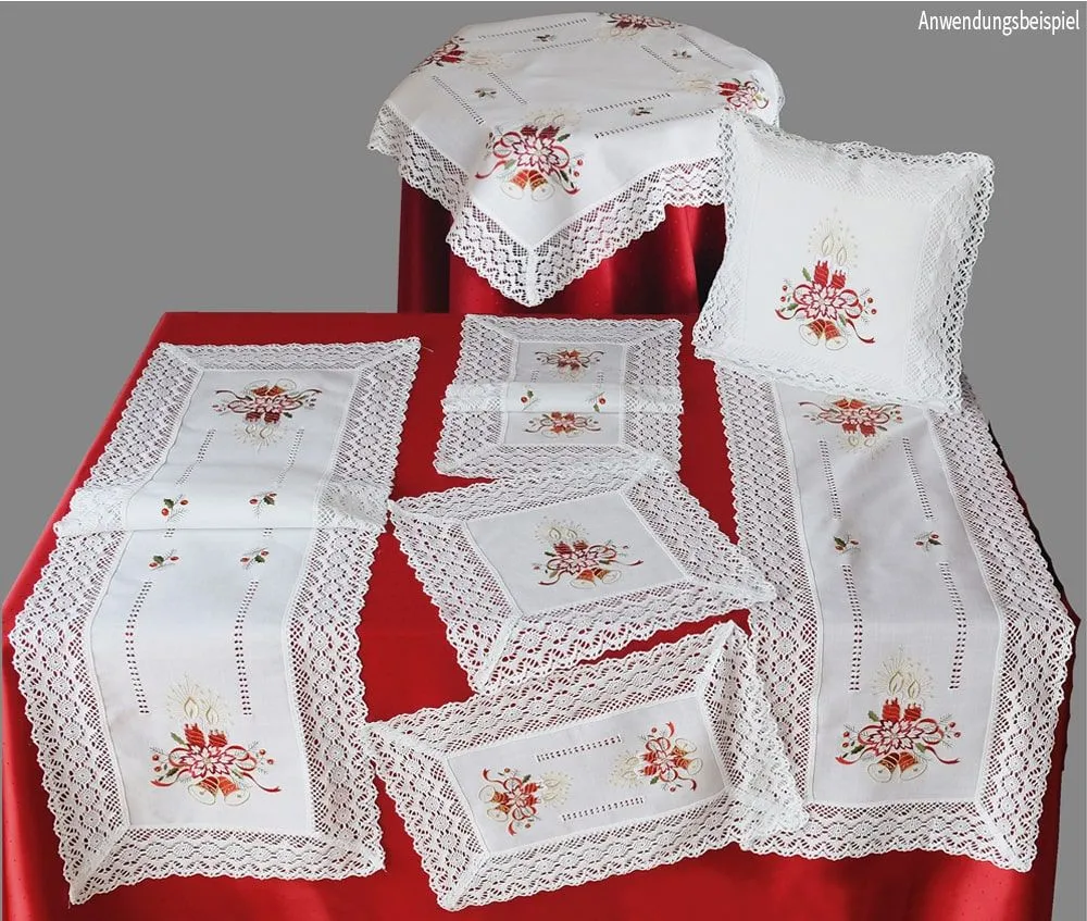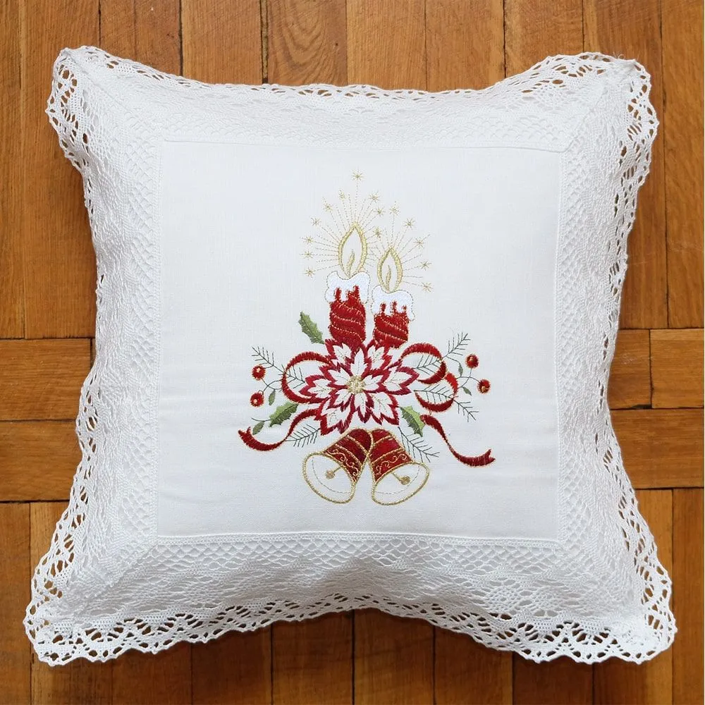 matches21 Kissenbezug Kissenhülle Heimtextilien Weihnachten gestickte Kerzen & Häkelspitze Polyester 40×40 cm weiß bunt