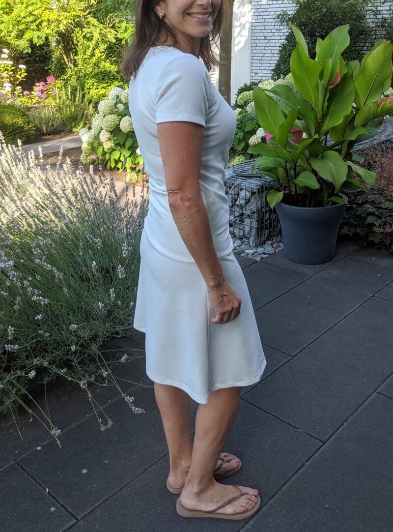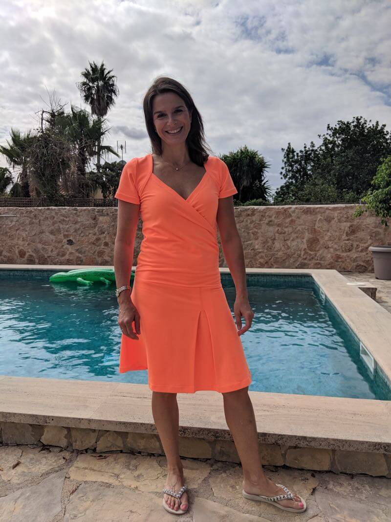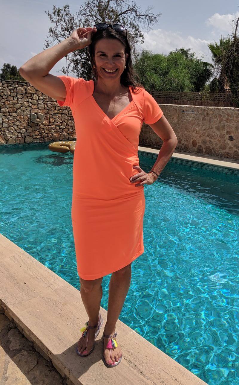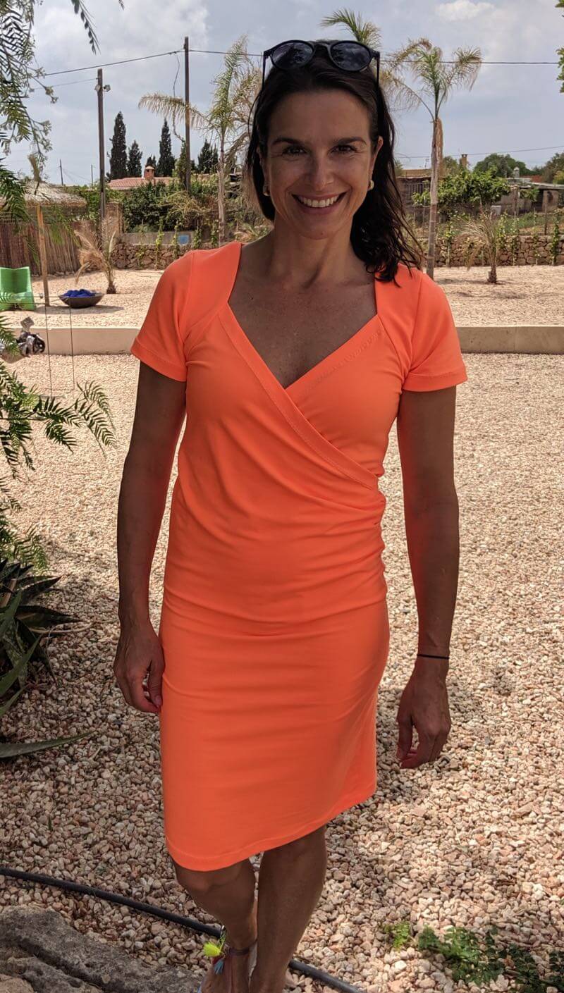 Dieses tolle Kleid in mit Wickeloptik ist ein echter Hingucker! Durch die rund geformten Schulterpassen und den Falten im Vorderteil zaubert es Dir ein tolles Dekolleté! Das Kleid kannt du in schlicht nähen oder Du nähst es mit einem angesetzten Rock mit einer Falte im Vorderteil. Du solltest schon ein wenig Näherfahrung für dieses Kleid haben, aber wenn Du das ein oder andere Kleid schon genäht hast sollte es kein Problem sein. Die Schritte sind im Ebook sehr ausführlich bebildert und erklärt. Wer nur das Shirt nähen möchte sollte sich das Schnittmuster Amira anschauen.