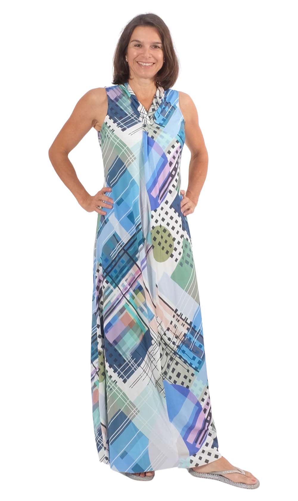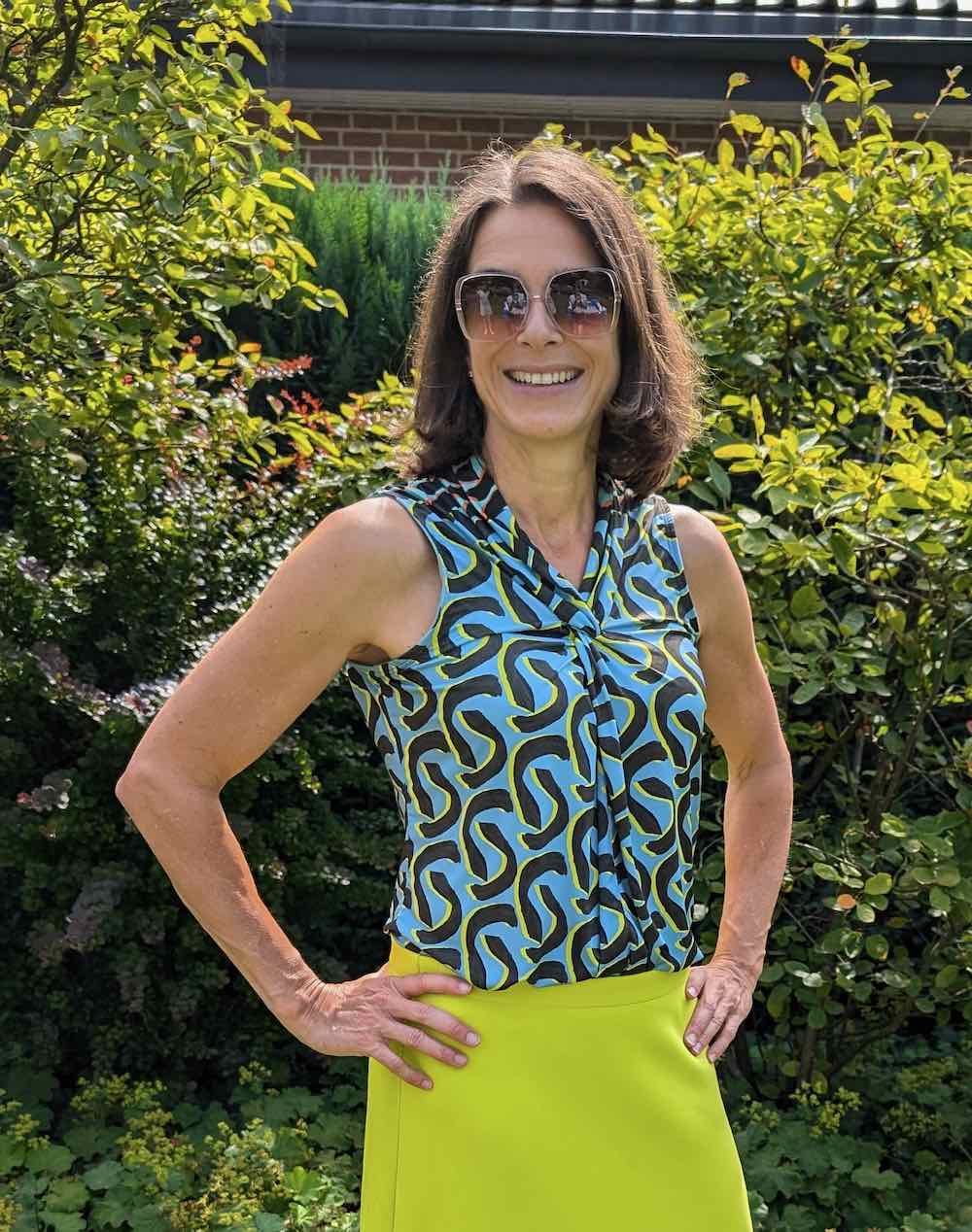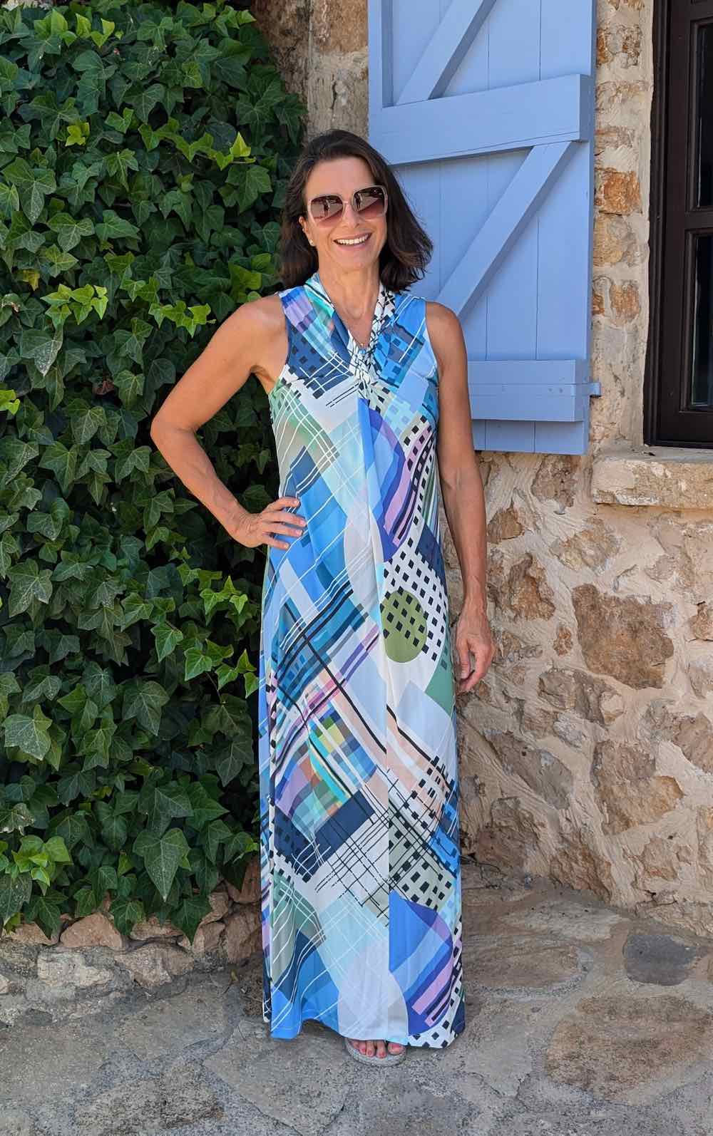 Ein wunderschönes Shirt mit raffiniertem Knoteneffekt am Ausschnitt und ohne Arme. Du kannst es als Shirt, knielang oder als Maxikleid nähen.