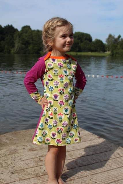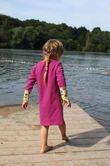Dieses Kleid ist nicht nur sehr schnell genäht, Du kannst hier so richtig kreativ werden! Wir haben den Style schon auf verschiedene Arten und aus diversen Stoffen genäht. Kombiniere doch einfach mal verschiedene Stoffe einer Serie bzw. verwerte größere Reststücke? Mit oder ohne Strumpfhose ist es auf jeden Fall das ganze Jahr über tragbar. Und wer ein Shirt braucht, der kürzt sich den Schnitt einfach…..