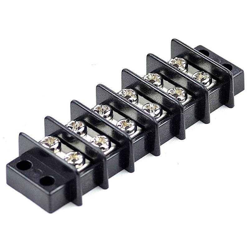 Klemmleiste & Verteilerleiste mit 6 Klemmen, 1 Kabelanschluss je Seite pro Klemmplatz (Schraubverbindung) für Kabelstärken bis 4 mm.