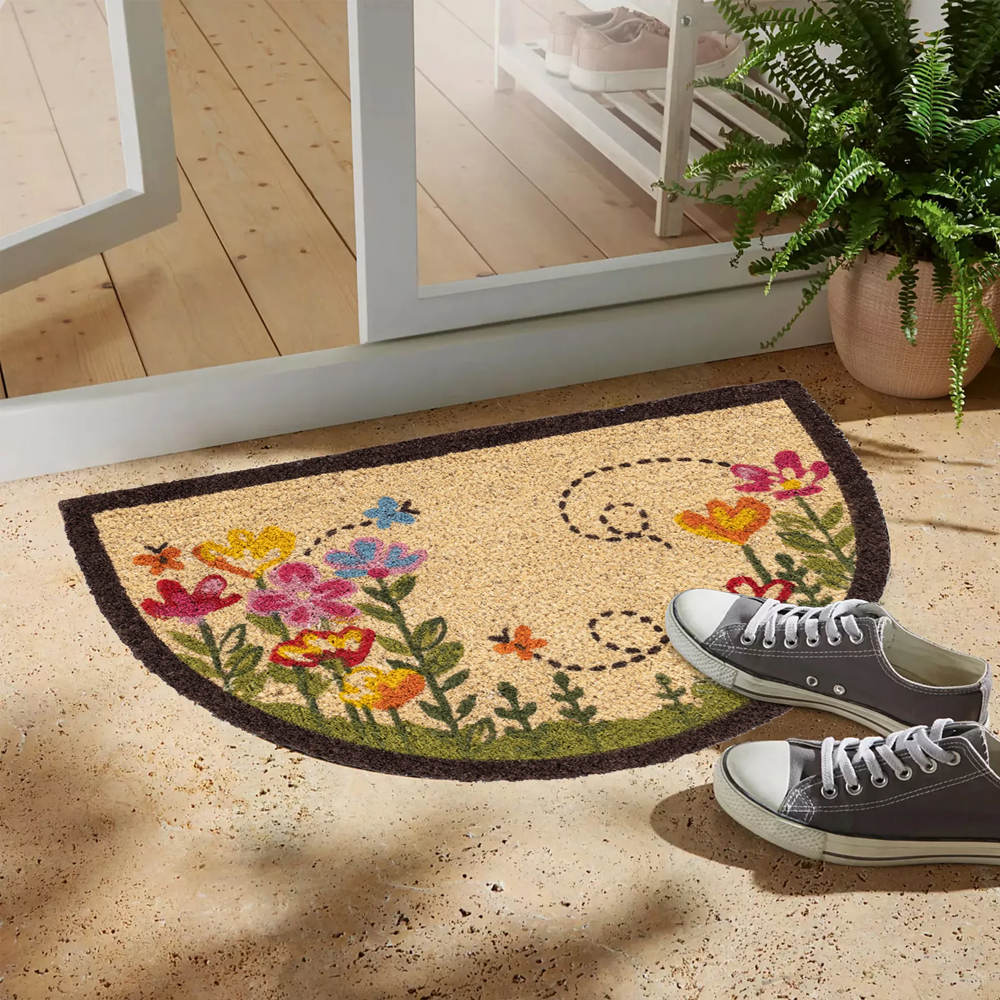 matches21 Kokosmatte Fußmatte Fußabstreifer KOKOS INDOOR bunt bedruckt mit Blumen & Schmetterlingen – 1 Stk 40×60 cm
