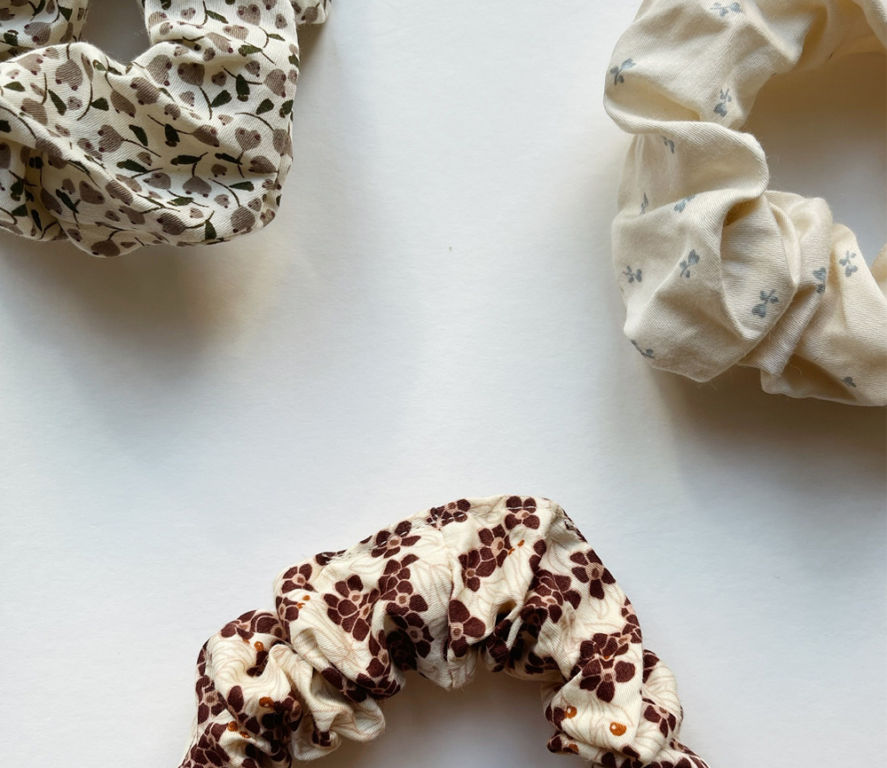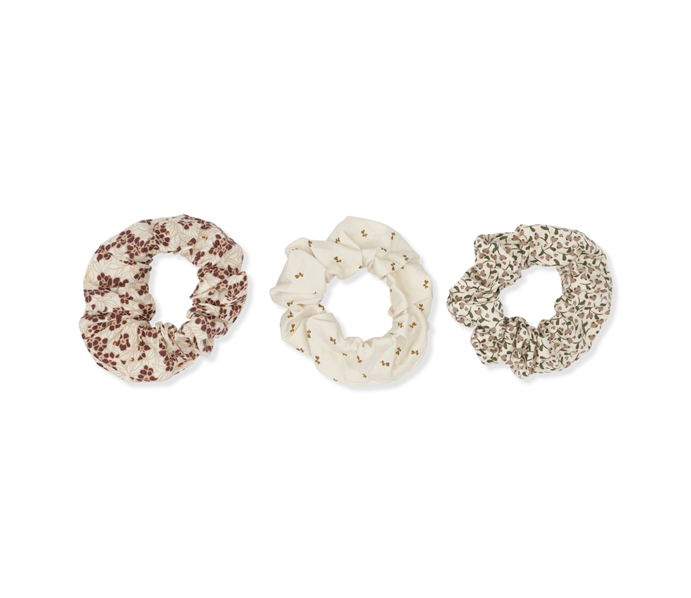 Hübsche Scrunchies im 3er Pack aus 100% Bio-Baumwolle. Ob für die Kleinen oder für dich selbst, schön und praktisch dabei zu haben.